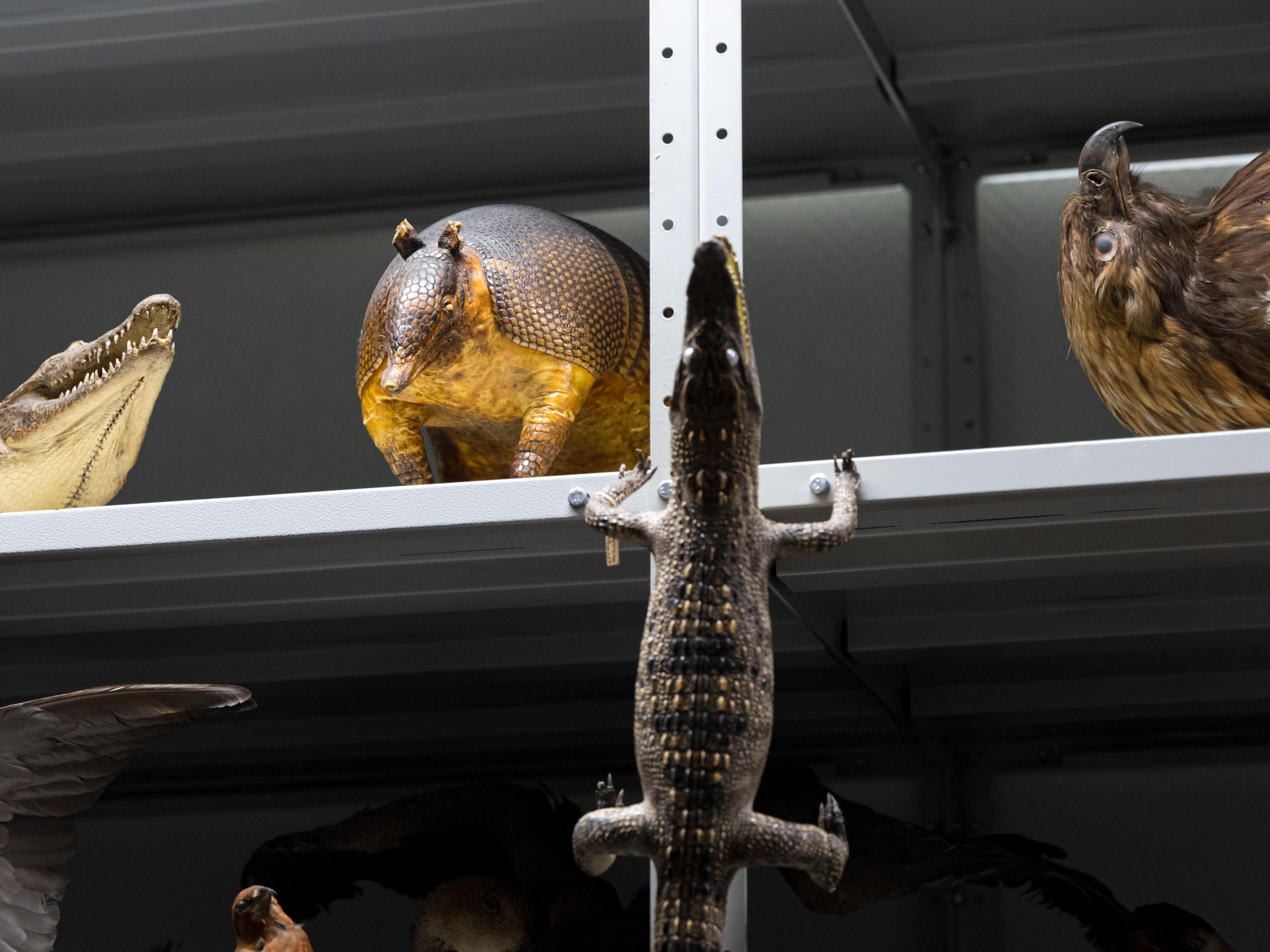 Together with Igor Gavrilov, we walk around all three floors. Among the exhibits, there are exotic ones: stuffed rare species of crocodiles, an armadillo, and others. They were illegally attempted to be imported into Russia, and customs officers seized them and transferred them to the museum.