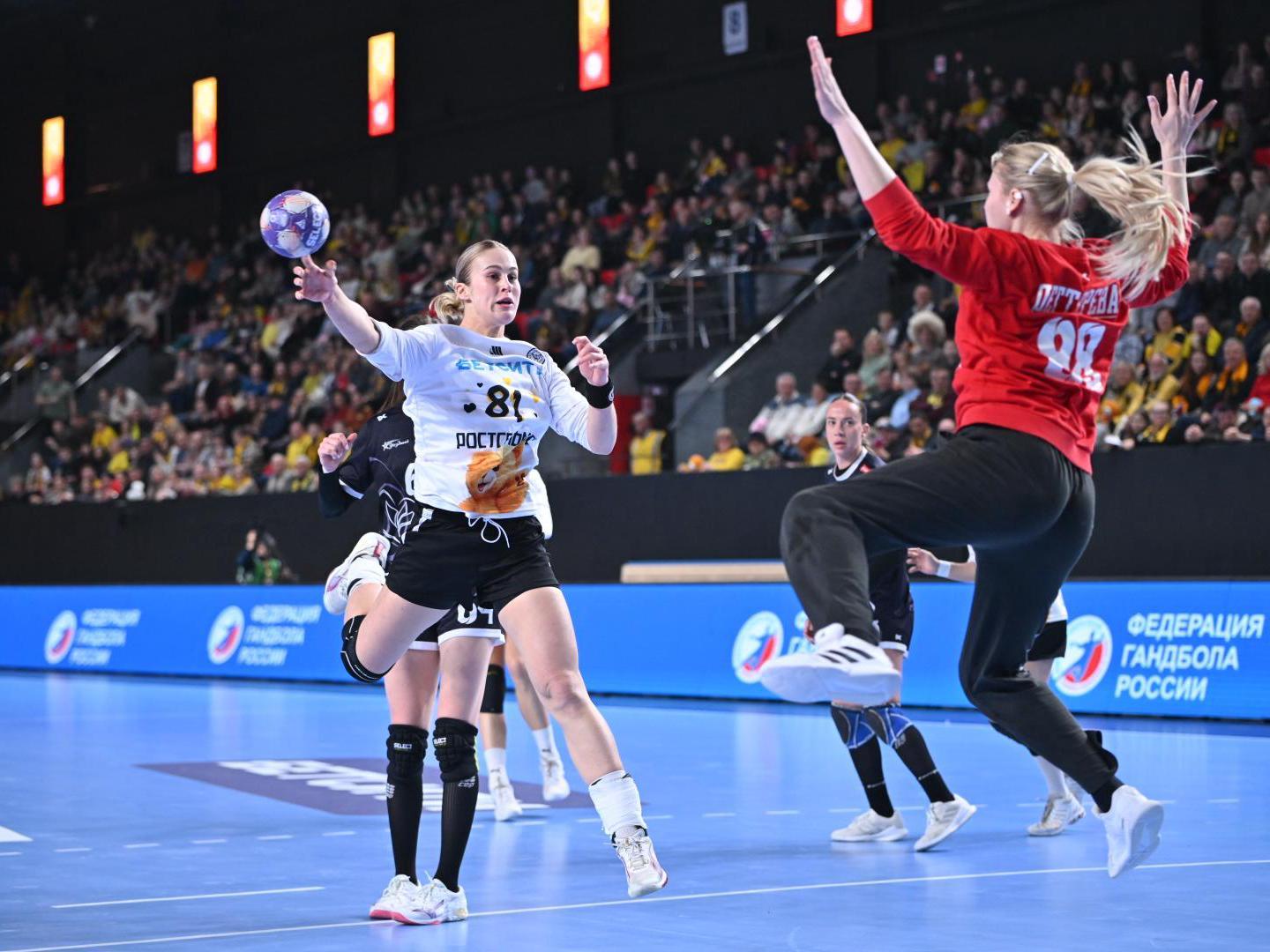 In the second half, Rostov-Don broke ahead from the first minutes and increased their advantage. All questions about the match winner were settled long before the final buzzer. The final score was 36:22. After the match, fans showered the court with plush toys, staging a «teddy bear shower».