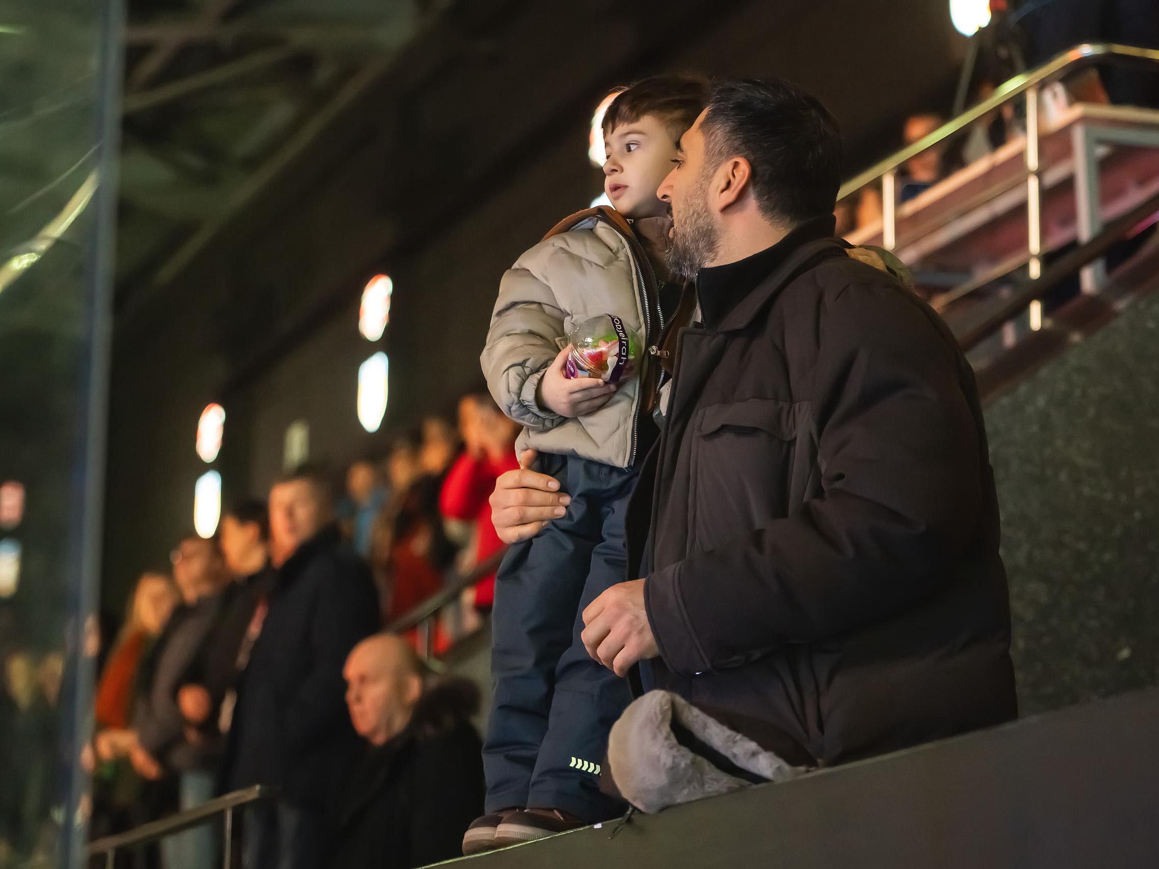 Supporters fill the stadium seats, patiently waiting for the hockey match to get underway.
