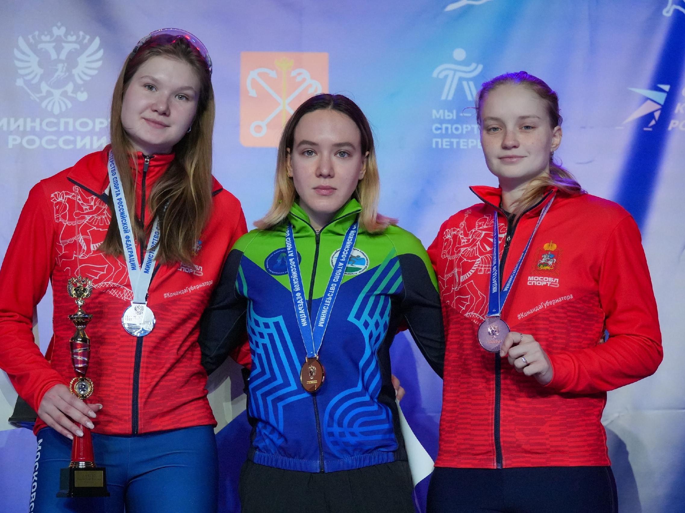 Her collection of awards includes titles as Russian champion in 2024 and 2025 in the all-around, Russian champion in 2025 in the 500 and 1000 meter distances, winner of the Russian Cup, and winner and medalist of the All-Russian Spartakiad of the Strongest.