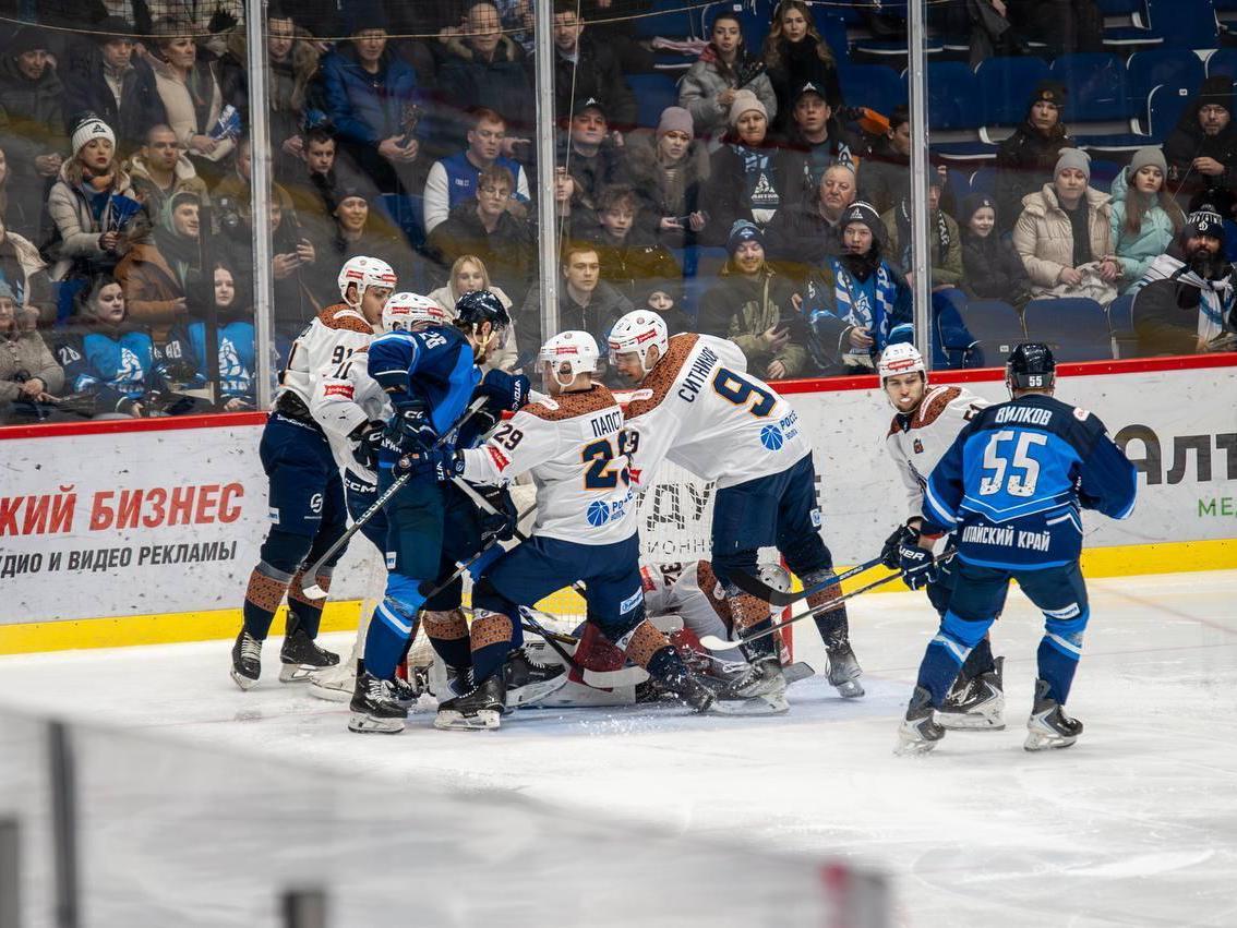 The most interesting period was the second. In the 27th minute of the match, Dynamo-Altai player Ivan Sinitsky «earned» a 2-minute penalty for high-sticking, and Yuzhny Ural«s hockey players capitalized on this opportunity. With passes from Konstantin Suslov and Daniel Kulash, Vladislav Rvachev sent the puck into the net — 1:0.