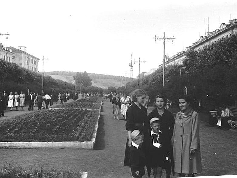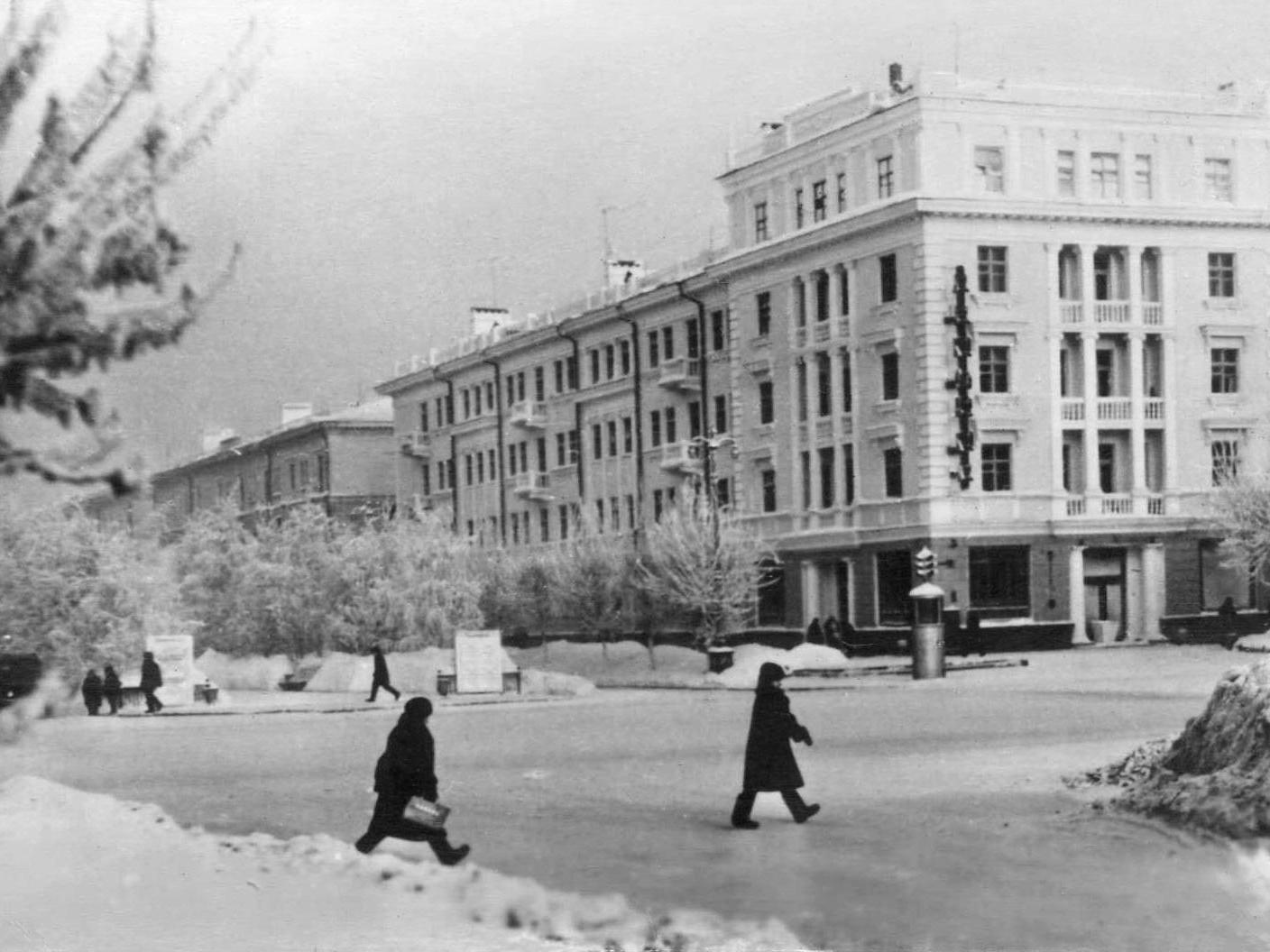Here are fashionistas from the late 1950s. Women from Kemerovo on the same Vesennaya Street. Dress lengths are still below the knee; the mini-skirt trend would come to Kuzbass much later.