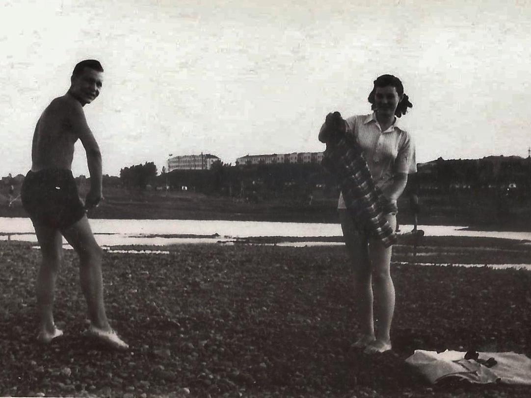 The Tom River bank often appeared in the lenses of Kemerovo residents. In the photo, a young man and woman are, apparently, sunbathing. Men«s swim trunks haven»t evolved much since those times to today. The photo was taken in 1955.