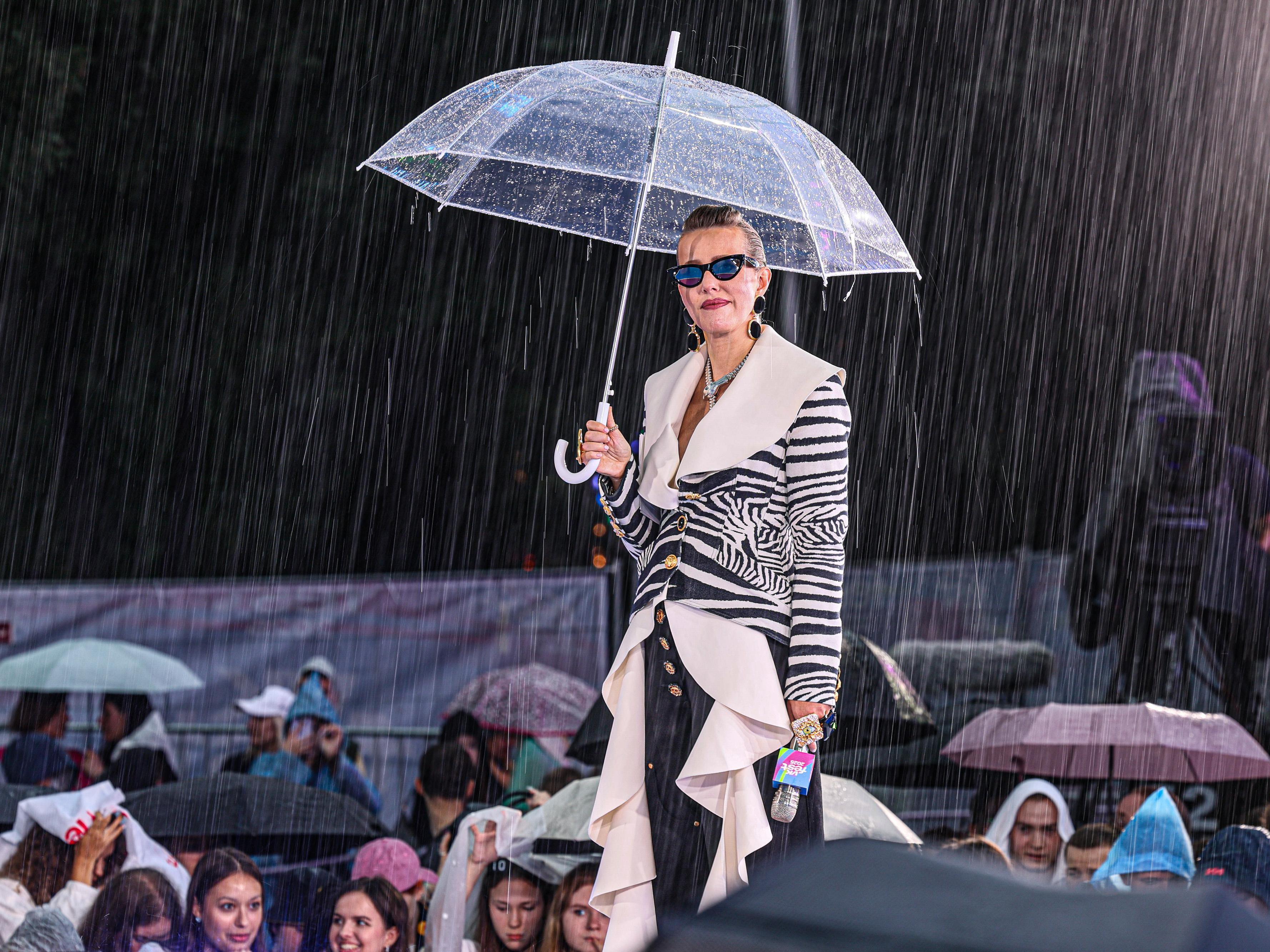 Ksenia Sobchak is always impeccably dressed, even in pouring rain.