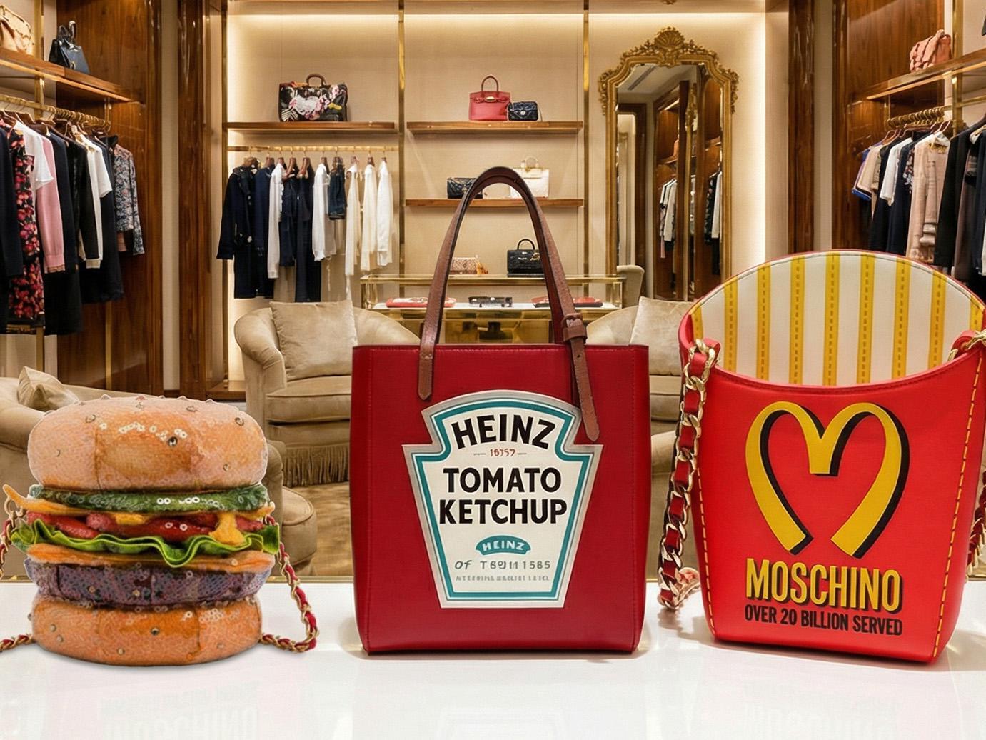 Besides Moschino, other brands also embody the gastronomic trend. For example, Kate Spade had a bag shaped like a glazed donut. Designer Judith Leiber created evening clutch crystals in the shape of a burger, hot dog, or strawberry. Anya Hindmarch offered the world a tote bag shaped like Heinz sauce and the aforementioned french fries.