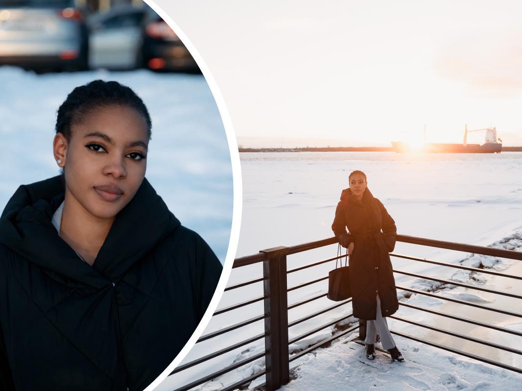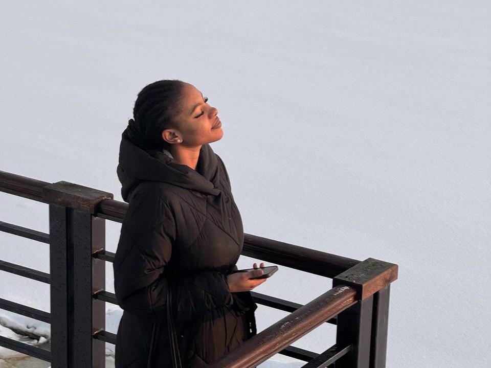 Joy Abisola Omoniyi went to study in Arkhangelsk from hot Nigeria. Here, she is pursuing an economics degree and works part-time in her free hours. She chose student life in the North herself and has no regrets. We got to know her better during a photo walk — the Nigerian woman seems born for photography, and the snowy winter highlights her vibrant appearance even more.