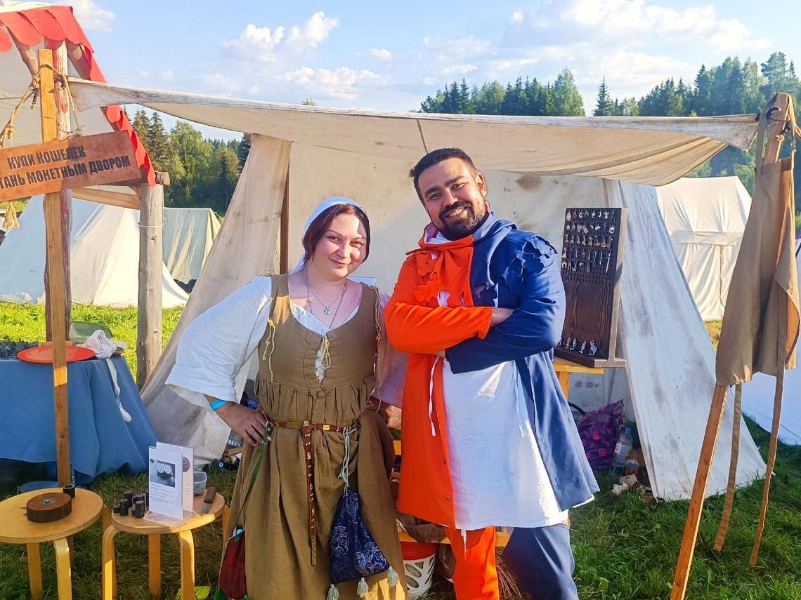 Ksenia regularly participates in historical reenactment festivals—for example, “Kulikovo Field” in Tula, dedicated to the anniversary of the Battle of Kulikovo, and the medieval combat festival “Great Bolgar” in Tatarstan. She brings with her a small clay forge—similar to those used in the 14th century. Bellows are attached to it and air is pumped in so that the air temperature reaches 1200°C (2192°F), as in a burner. The Perm woman conducts master classes on bead-making and sells finished items.