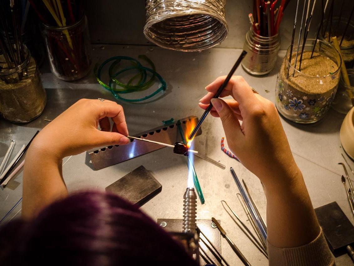 — “There are different techniques and types of glass. Glasses differ in their coefficient of thermal expansion—this is the temperature at which they melt,” Ksenia explains to us. “For lampwork, low-melting glass is used—it starts melting at 600°C (1112°F), and the working temperature in our burners is 1200°C (2192°F).”