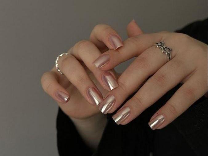 With mirror rub, the «soft square» plays in a new way. Thanks to highlights and shimmers, the format becomes even more expressive, even if you have short nails. What you shouldn«t forget — mirror rub itself catches the eye, so don»t overload it with bright colors, additional decorations, stickers, or patterns.
