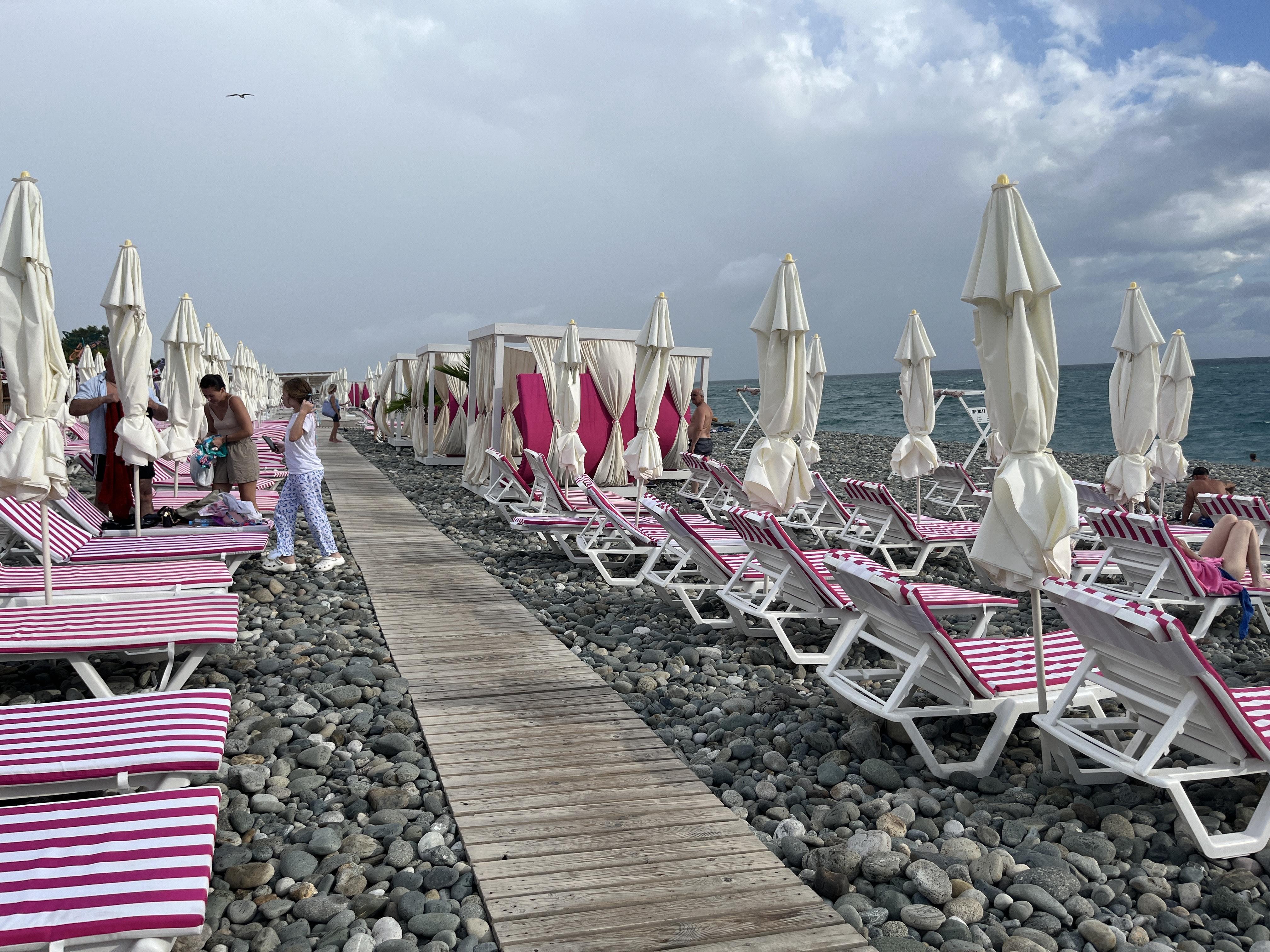 The beaches in Gagra, Pitsunda, and Sukhumi are also mostly pebbly, but the pebbles are smaller and not as sharp as in Sochi. Pitsunda has sandy beaches, so there is a choice.
