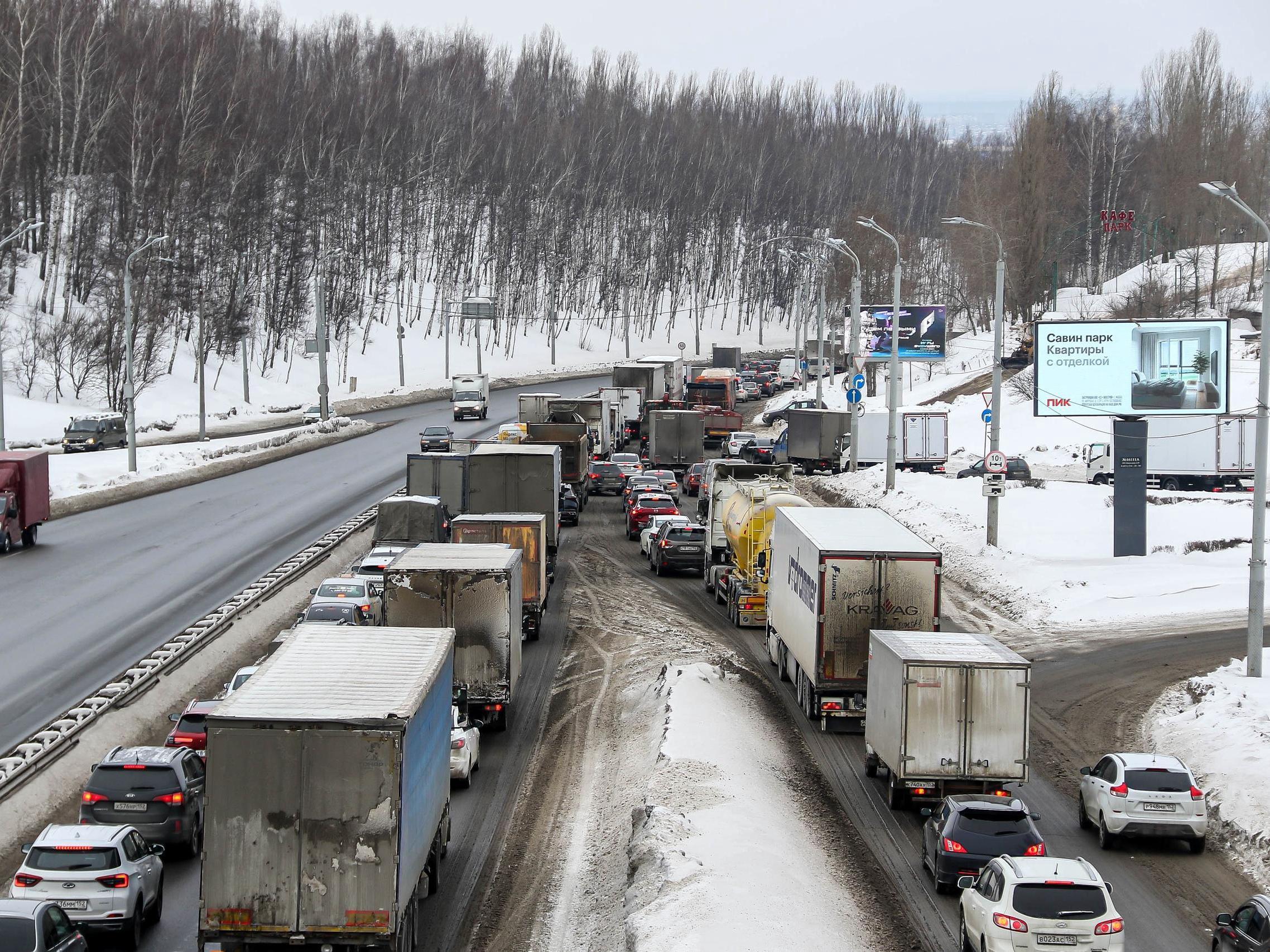 Roads leading to Nizhny Novgorod and within the city are gridlocked with traffic.