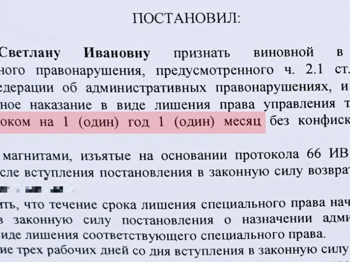However, the judge revoked Sveta«s driver»s license for one year and one month.