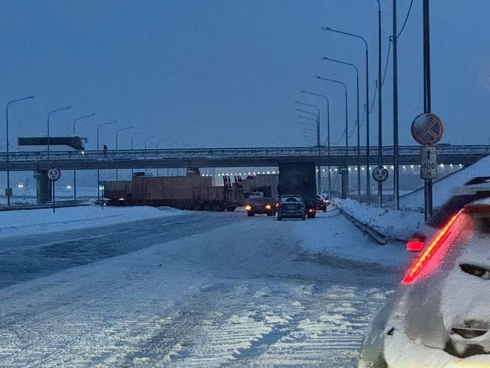 On Thursday morning, January 29, two trucks collided on the M-5 highway in Sverdlovsk Oblast, closing traffic towards Yekaterinburg. The accident occurred under a bridge leading to the village of Patrushi (Sysertsky District), according to our colleagues at E1.RU.