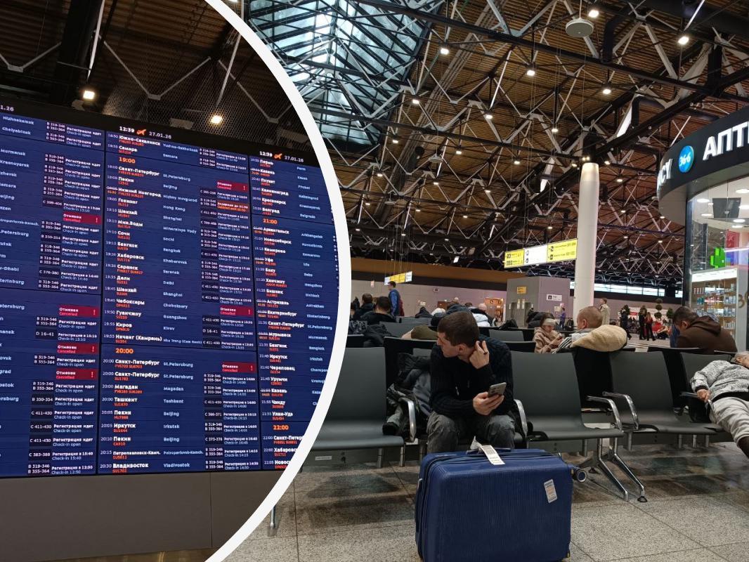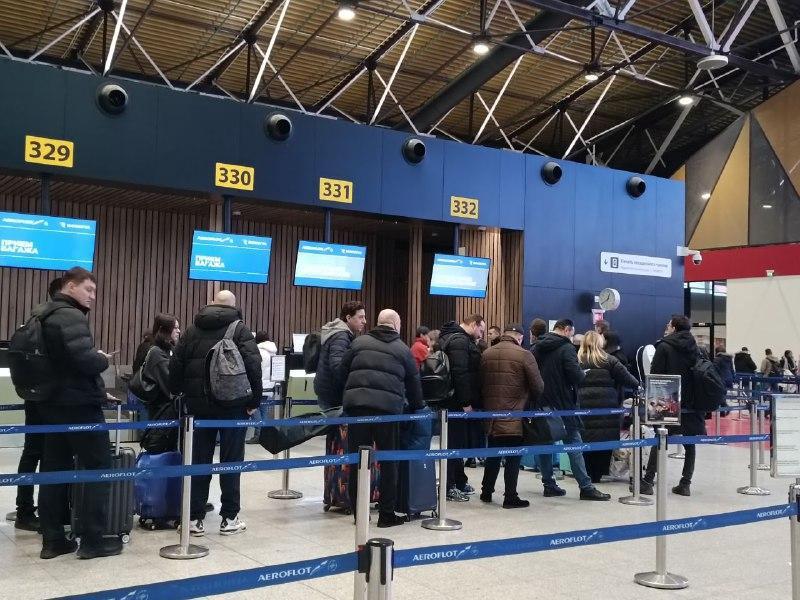«Passengers of canceled flights SU-1140 to Sochi and SU-1192 to Kazan, please proceed to the check-in counter,» is announced over the loudspeaker.