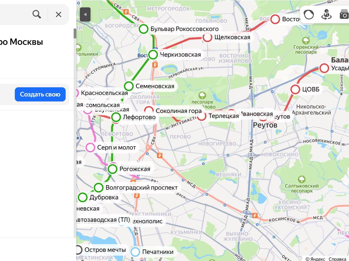 And the Troitskaya line became a chord for us and passed through the east of Moscow to «Cherkizovskaya», then took «Bulvar Rokossovskogo» and the future stations «MGSU» (Moscow State University of Civil Engineering) and «Yaroslavskaya». And the red line went through «Shchelkovskaya» to the settlement of Vostochny.