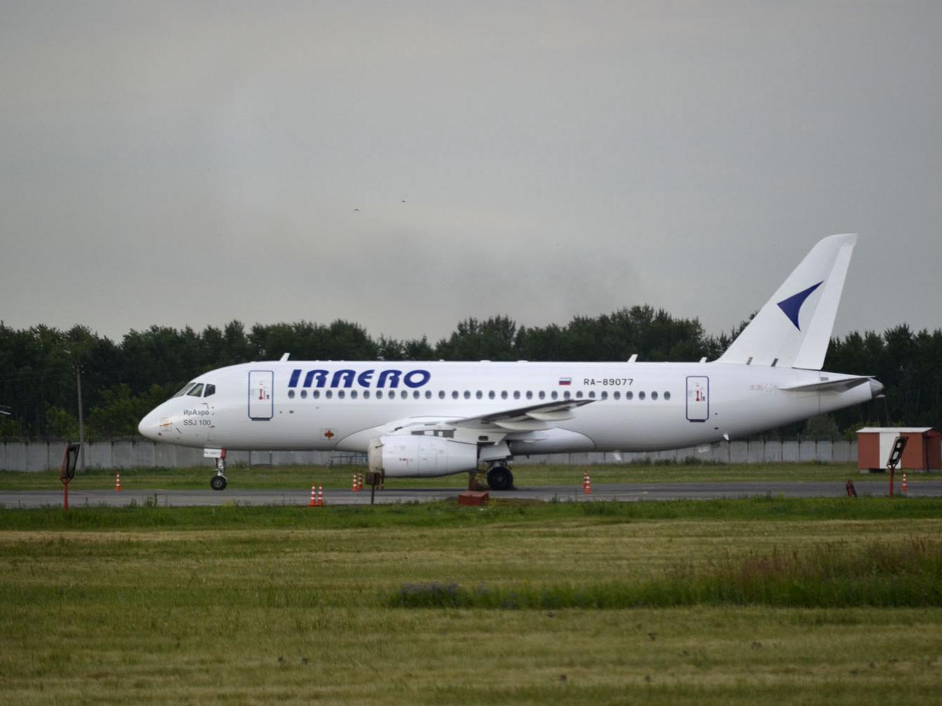 The photo shows the IrAero aircraft that returned to Irkutsk Airport following a reported technical issue.