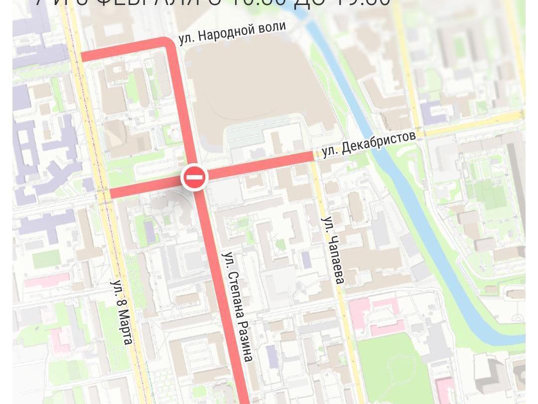 On February 6 from 14:30 to 22:00, and on February 7 and 8 from 10:30 to 19:30, traffic will be restricted on the following streets: