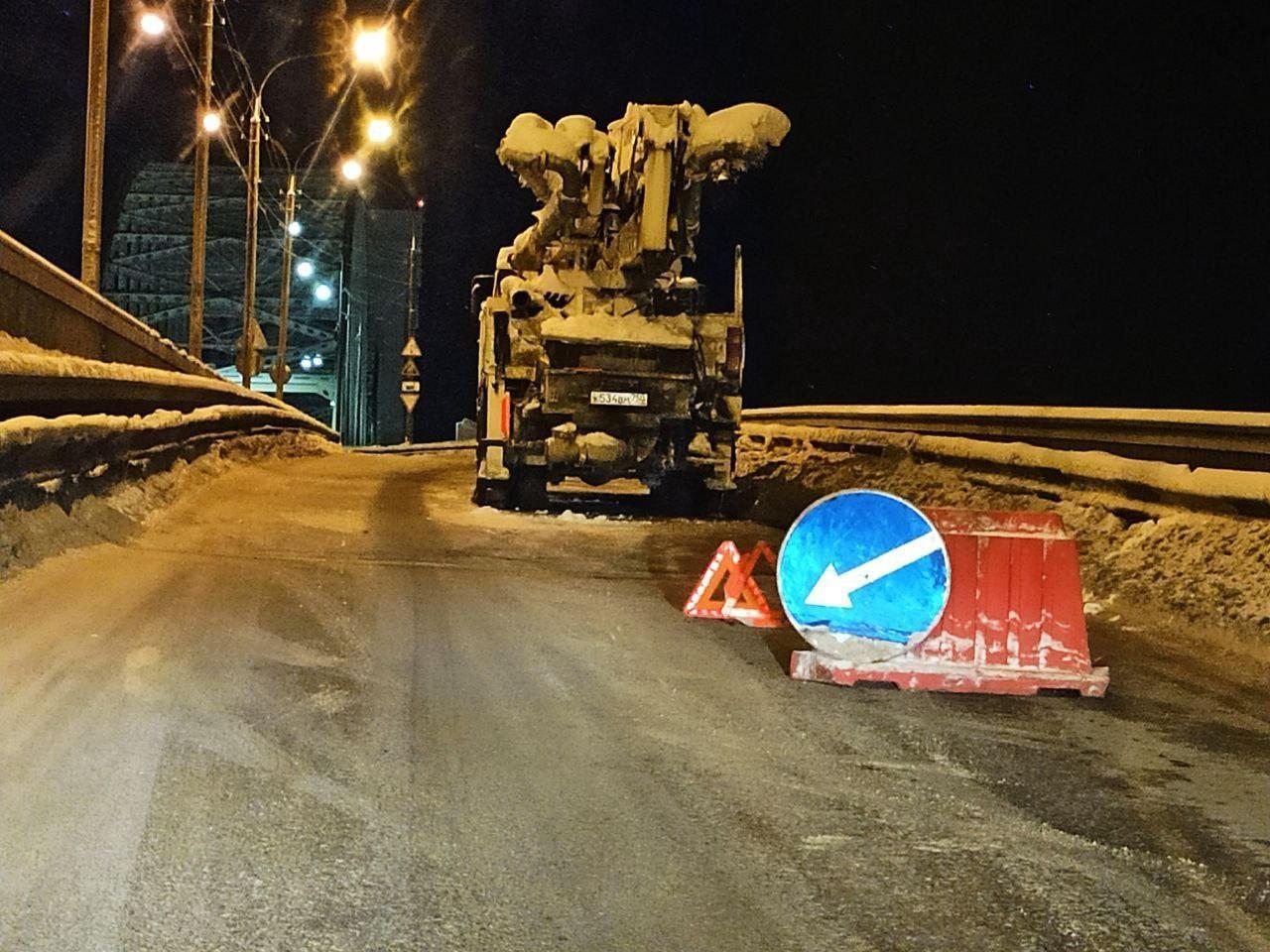 On the Krasnoflotsky Bridge in Arkhangelsk, traffic from the left bank has been temporarily blocked — a truck is stuck there.