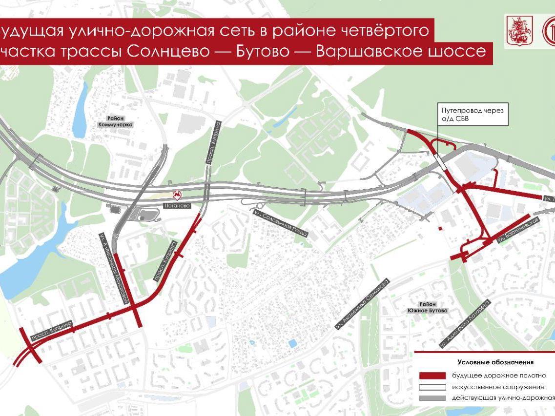 Authorities plan to build a section of a main street from Projected Passage No. 816 to Bartenevskaya Street. They will also construct an overpass across the Solntsevo–Butovo–Varshavskoye Highway.