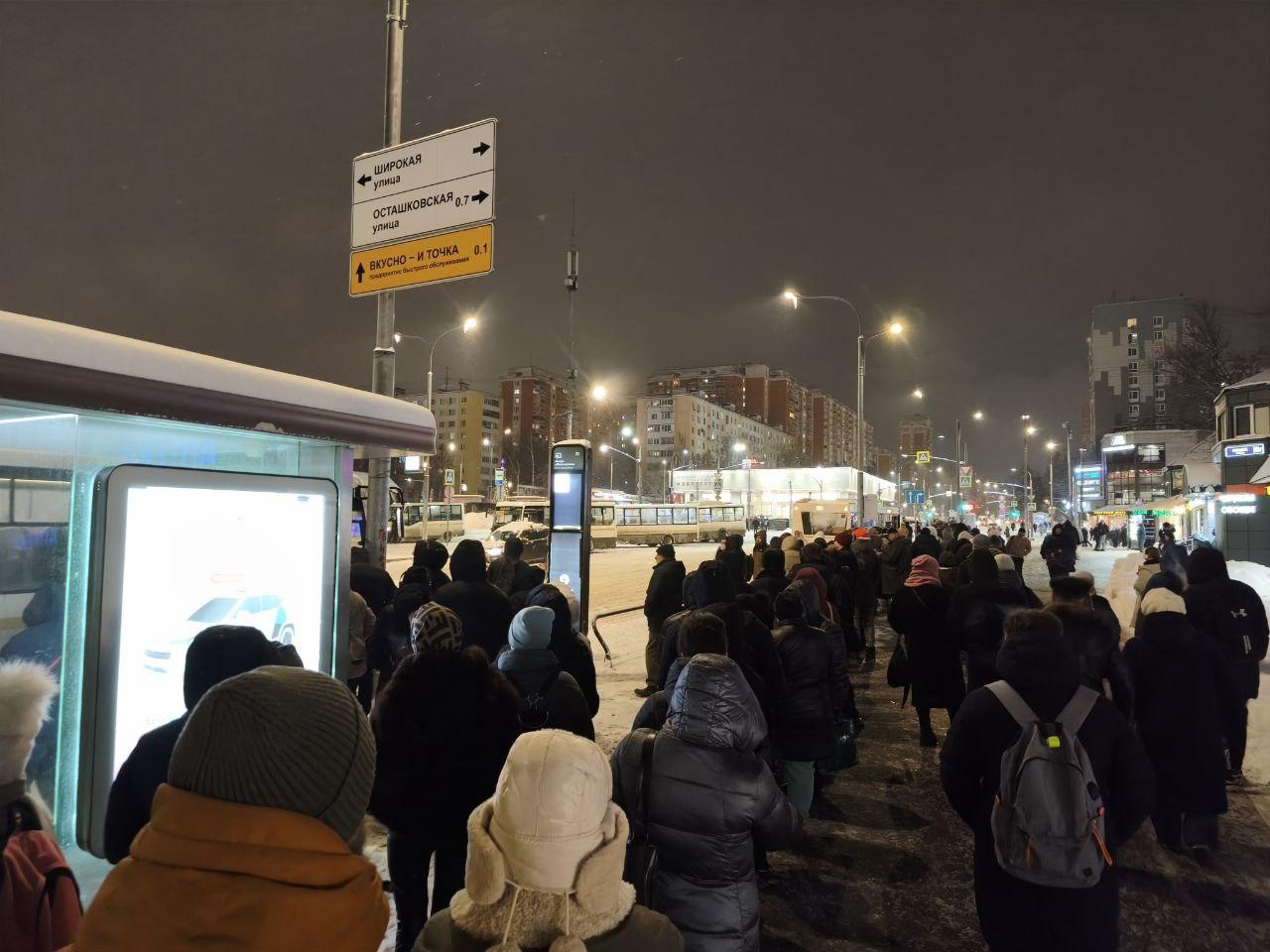 Queues of dozens of people have gathered at Medvedkovo metro station. Passengers are waiting to board buses heading to Mytishchi. At that time, there were traffic jams on Ostashkovskaya Street and at the intersection with the Moscow Ring Road.