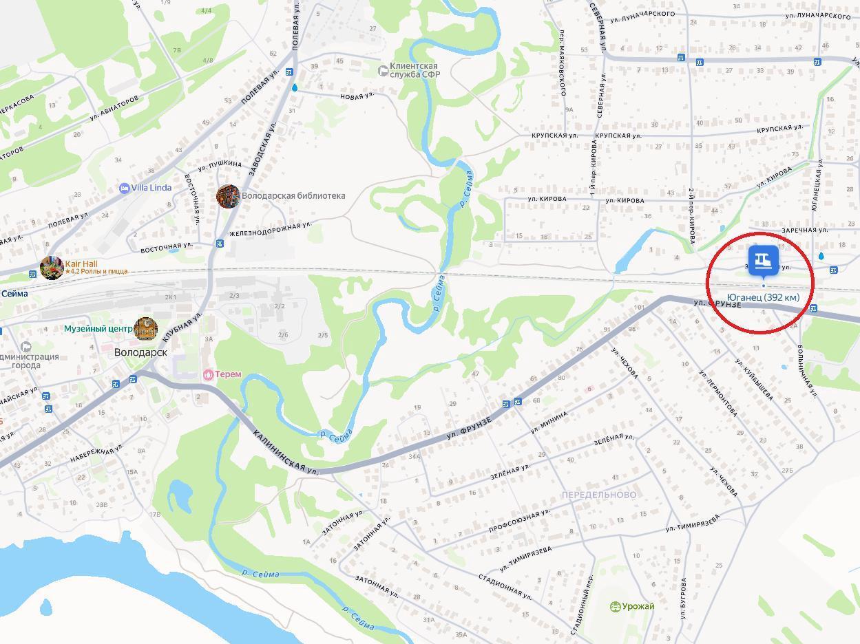 Train No. 6334, departing at 19:04 and arriving in Nizhny Novgorod at 20:26, will stop at the new platform at 19:30. The stop is located within the town of Volodarsk, near the highway of the same name.