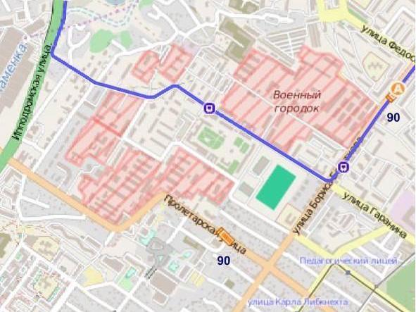 Minibus route No. 90 is now detouring along Proletarskaya Street to avoid the blocked section.