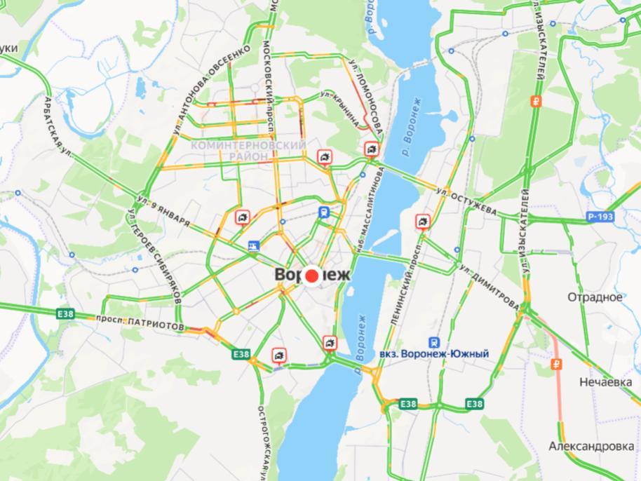 Traffic jams gripped Voronezh on the morning of 30 January after an overnight snowstorm. Although by 09:30 the situation on the roads had slightly improved compared to the previous hour, movement is still difficult on the main city streets. The situation is complicated by numerous accidents.