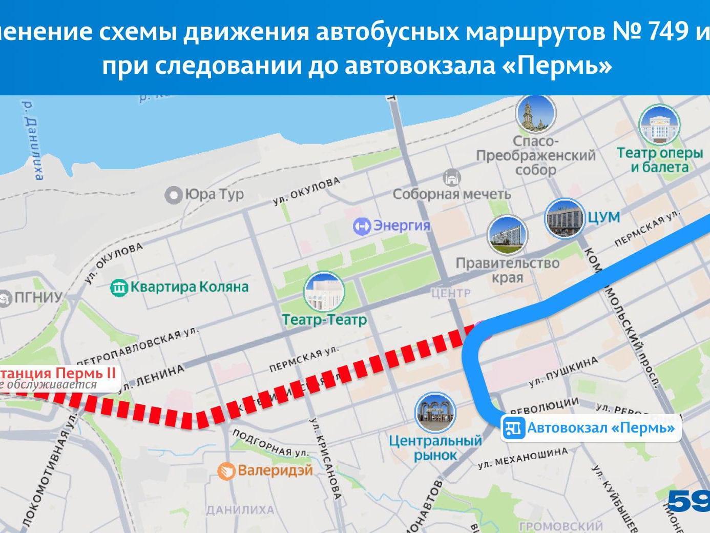 When traveling to Perm, buses No. 749 «Solikamsk – Perm» and No. 806 «Berezniki – Perm» will no longer stop at Perm II station. The stops «Transagency» and «Perm II» will be removed from the route. The Ministry of Transport of the Perm Krai says the routes are being changed due to difficult road conditions.