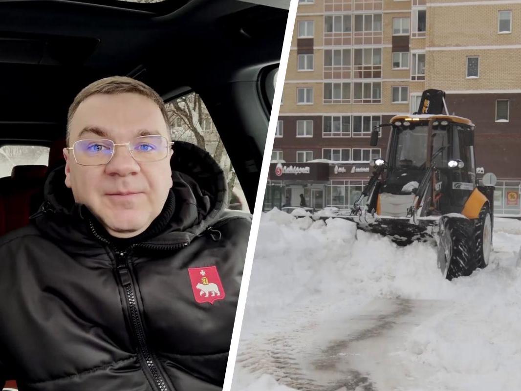 Perm Mayor Eduard Sosnin personally drove around the city to check snow removal efforts, focusing on the Motovilikha district.