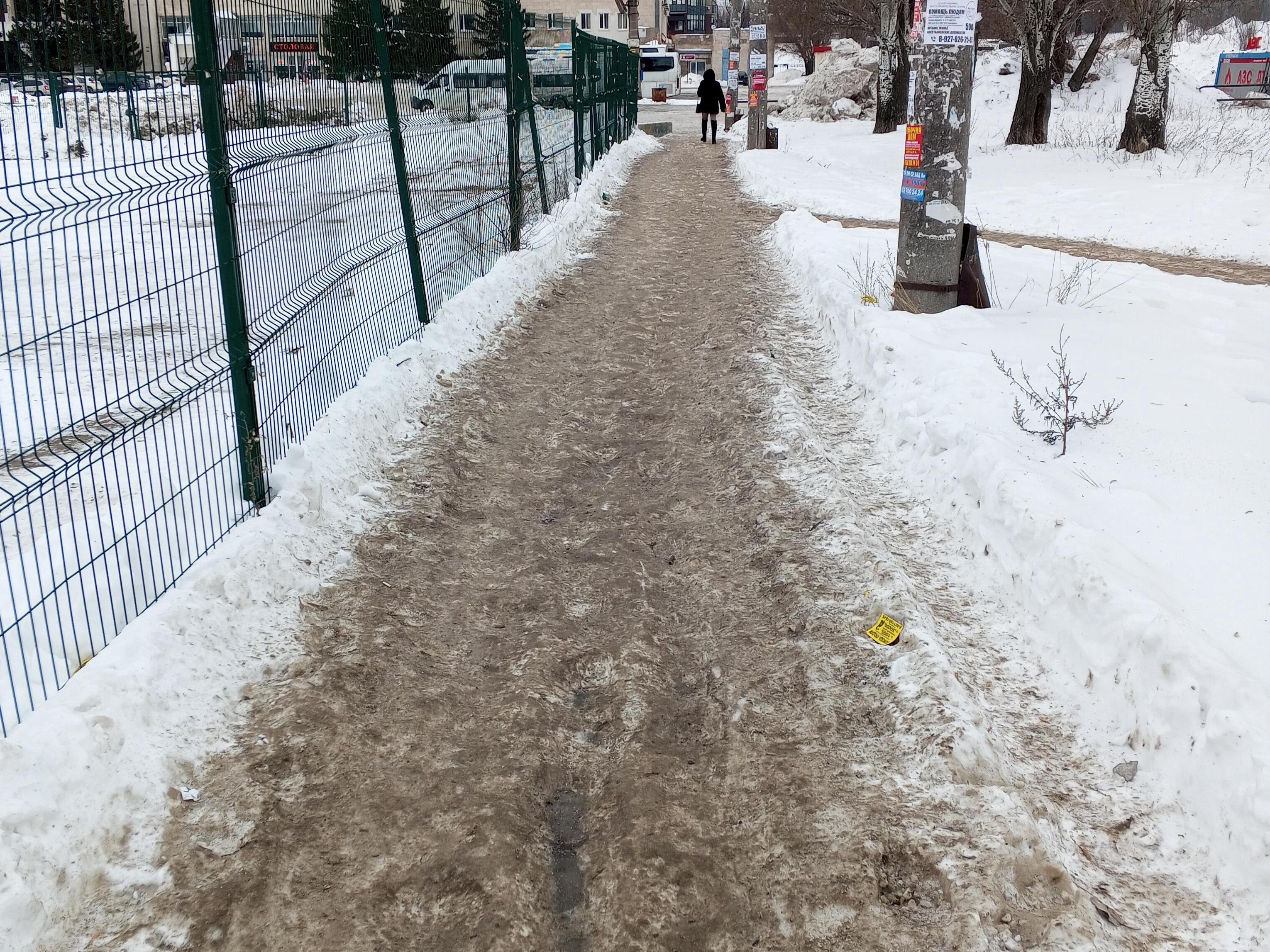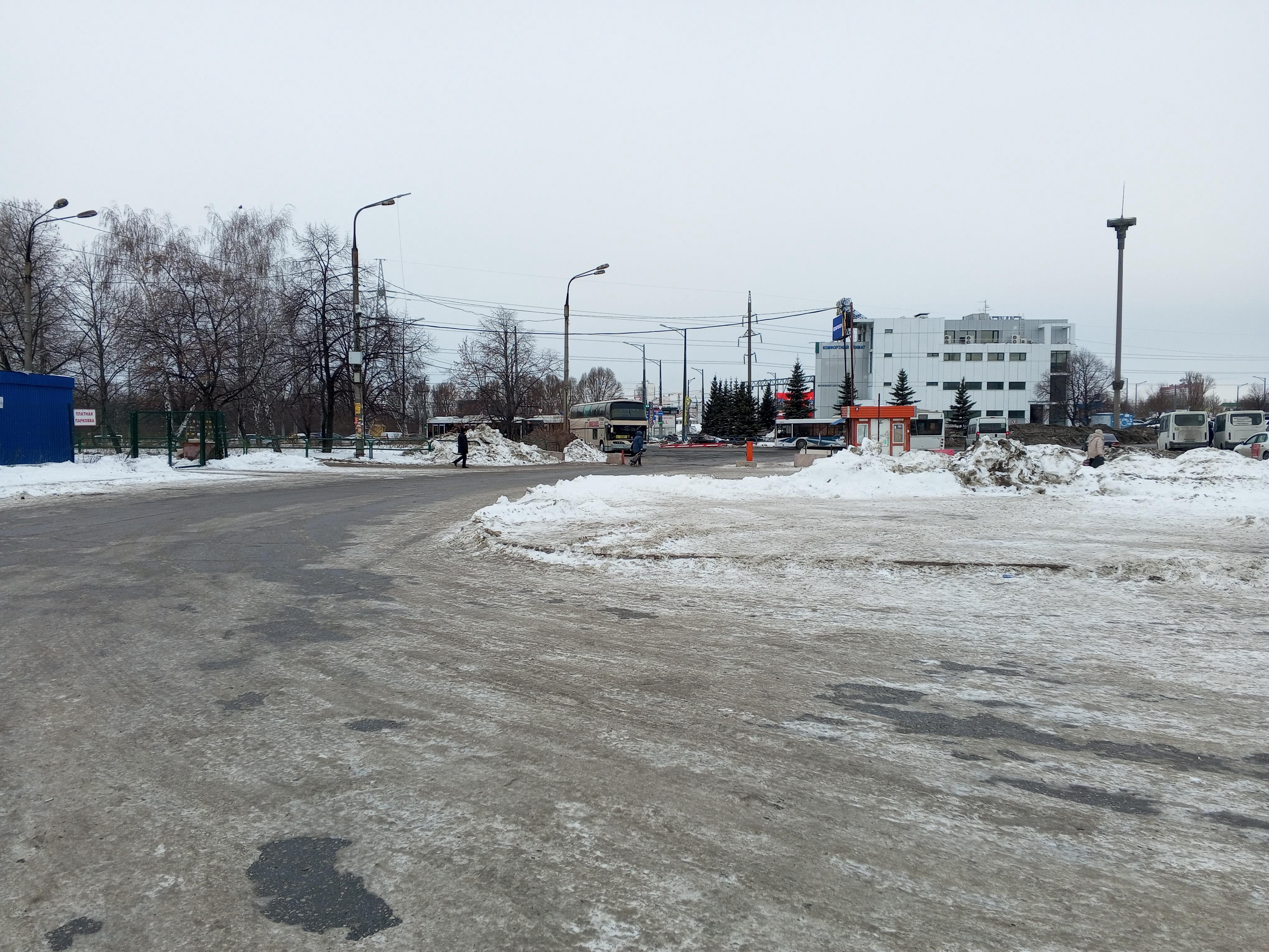 The approach to the bus station from Moskovskoye Shosse is still relatively comfortable — you go around the cars literally along the wall. But to approach the building from Avrora Street, you first have to go around the fenced parking lot along a narrow path. It is in poor condition and in winter it looks like this.