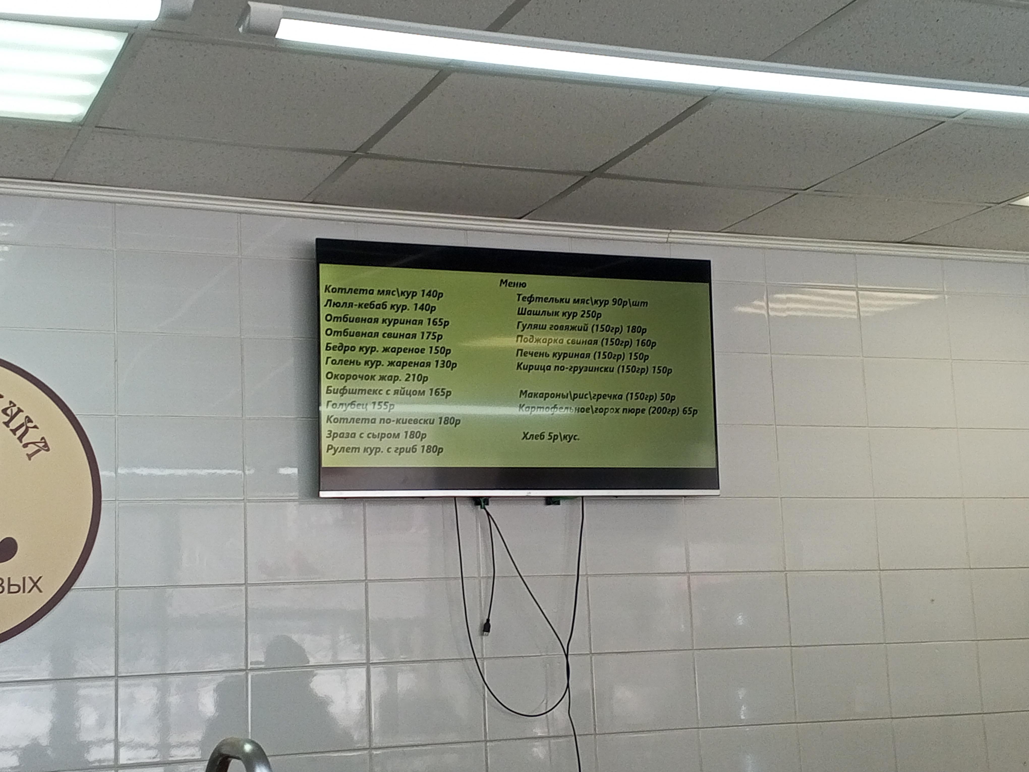 On the menu — everything that should be in normal canteens: pastries, side dishes, hot dishes, breakfasts, drinks, salads, and soups. Portion sizes are normal, and prices are reasonable — all within 200 rubles (about $2 at current rates).