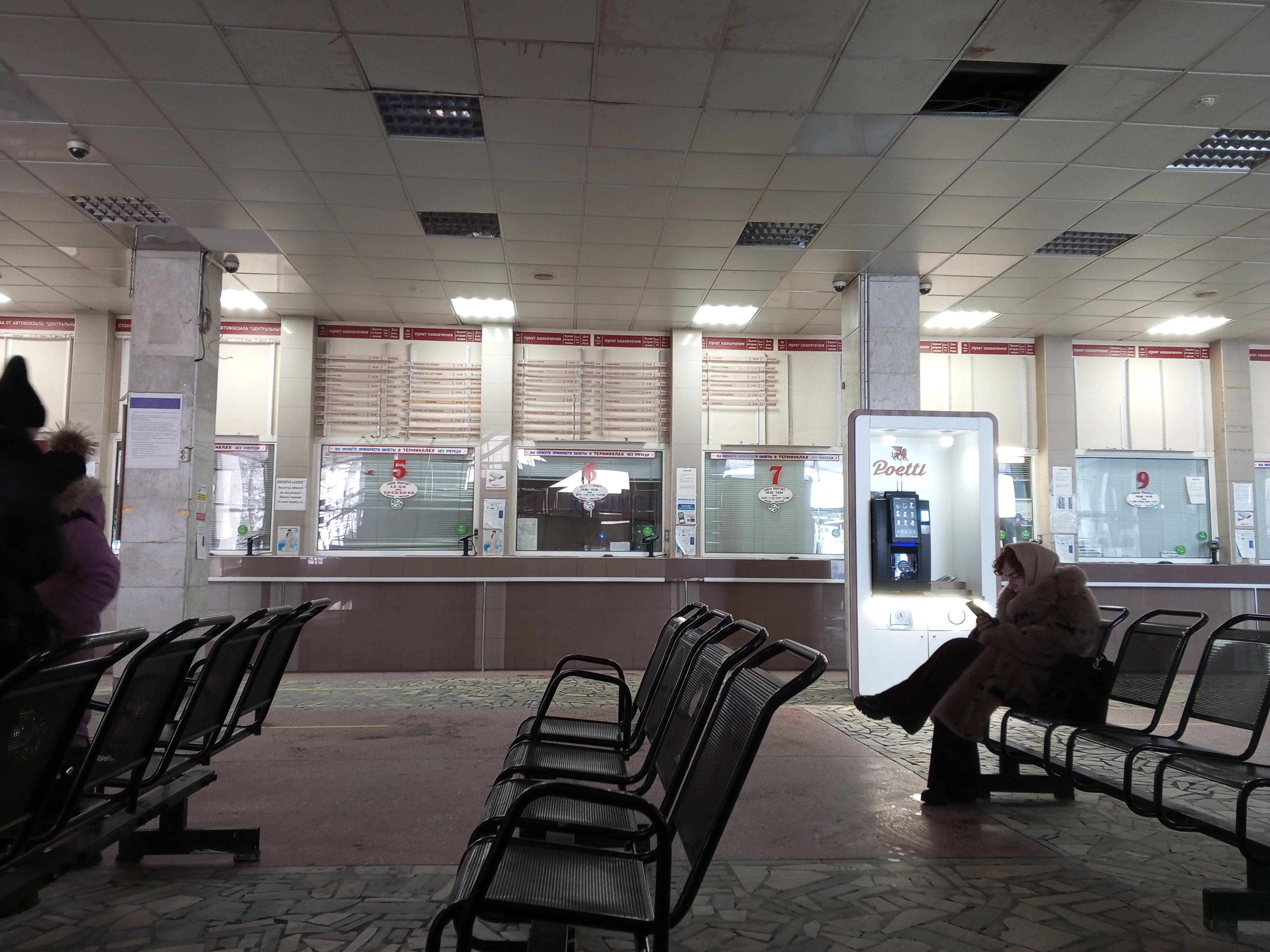 On the first floor of the bus station, there are ticket offices. There are many — as many as eleven. But not all are working, and besides, you have to stand in a live queue.