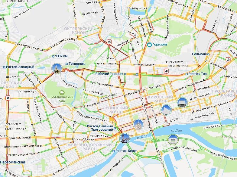 Jams have formed in the city center, in the Western and Northern residential areas, as well as on Sholokhov Street and in the Selmash neighborhood. The situation is particularly difficult on Vavilov Street. There, according to Yandex Maps, an accident occurred. A reader of 161.RU reports that on the incline towards Vavilov, there is currently «a traffic jam of skidding trucks with trailers, lorries, and stuck fuel tankers» — snow has not been cleared there.