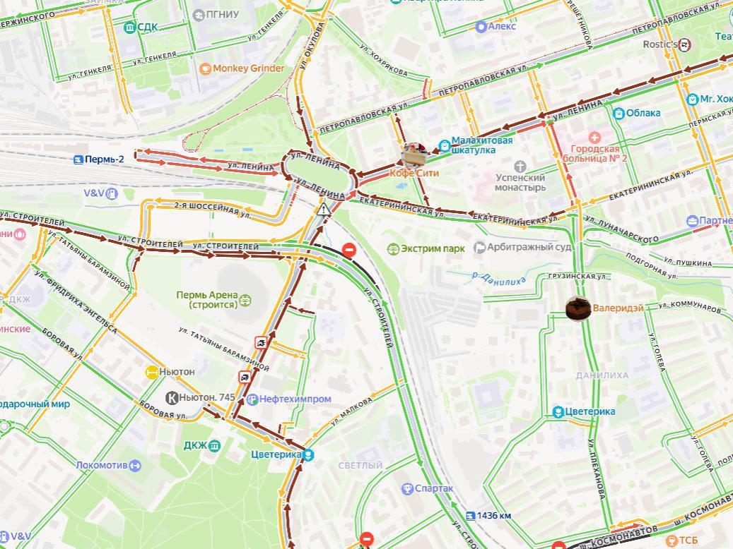On the morning of 20 January, a traffic collapse occurred at the exit from the Parkovy microdistrict. Despite the fact that the city as a whole had only moderate seven-point traffic jams, online maps showed all exits from Parkovy colored a deep burgundy. The maps indicate two accidents on Lokomotivnaya Street, Stroitely Street is at a standstill, as is the roundabout on Gaidar Square. The Perm Road Safety Center has also reported on the road accidents in that area.