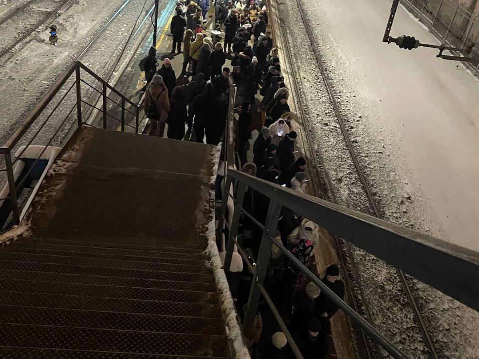 Passengers on suburban trains are reporting disruptions on several Moscow Central Diameter (MCD) lines, specifically MCD-2 and MCD-4. Based on footage from platforms, crowds were disembarked from at least one train.