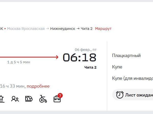 Train No. 70, which departed Moscow on February 1, is delayed by 16.5 hours on its way to Chita due to a freight car derailment. Information about the delay is displayed on the Russian Railways (RZD) website when purchasing tickets.