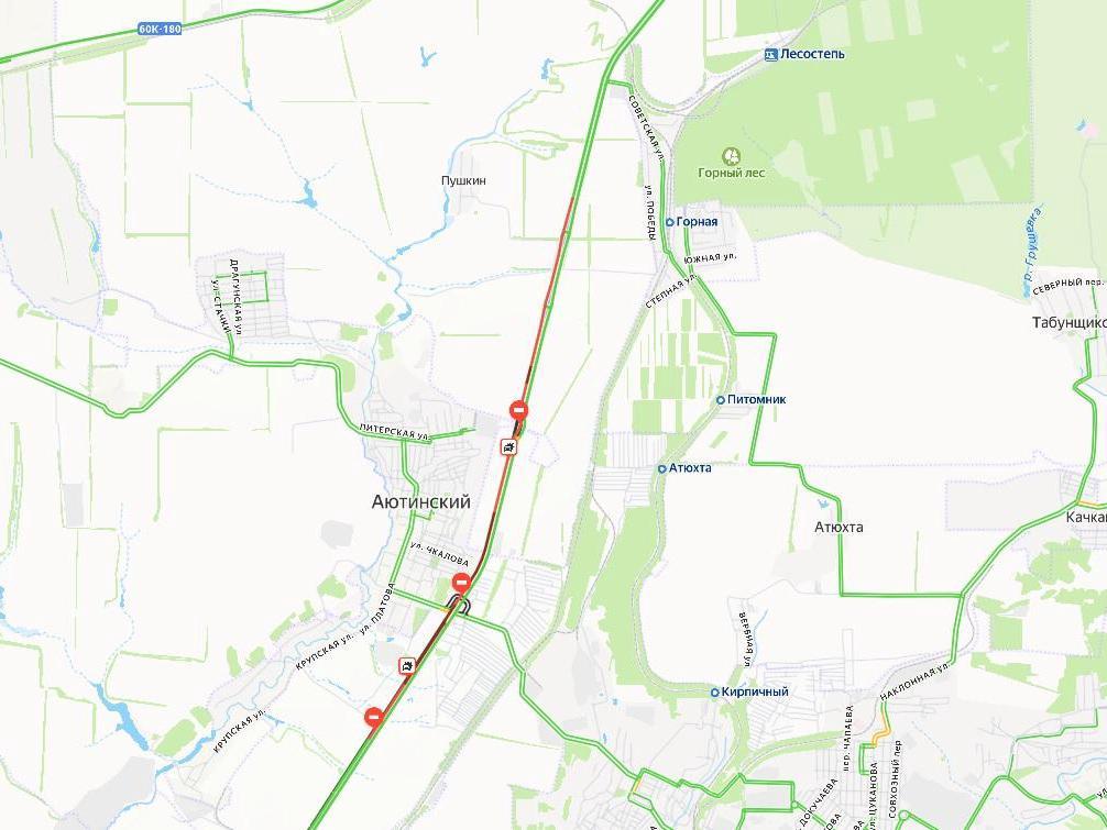 A ten-kilometer traffic jam has formed on the M-4 «Don» highway near the village of Ayutinsky in Rostov Oblast, Russia. According to the regional traffic police, the cause was an accident.