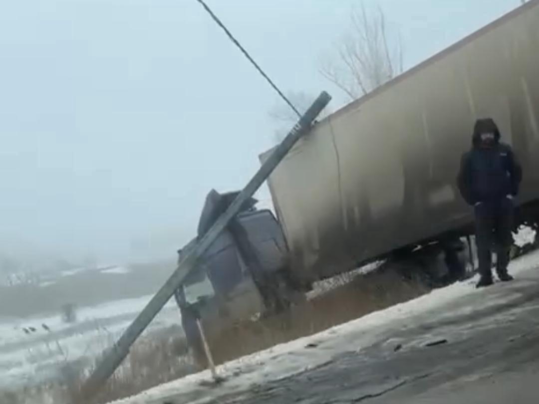At the entrance to Yerzovka (670-664 km of the R-228 highway), one truck veered into a ditch, likely due to heavy fog, and hit a pole.