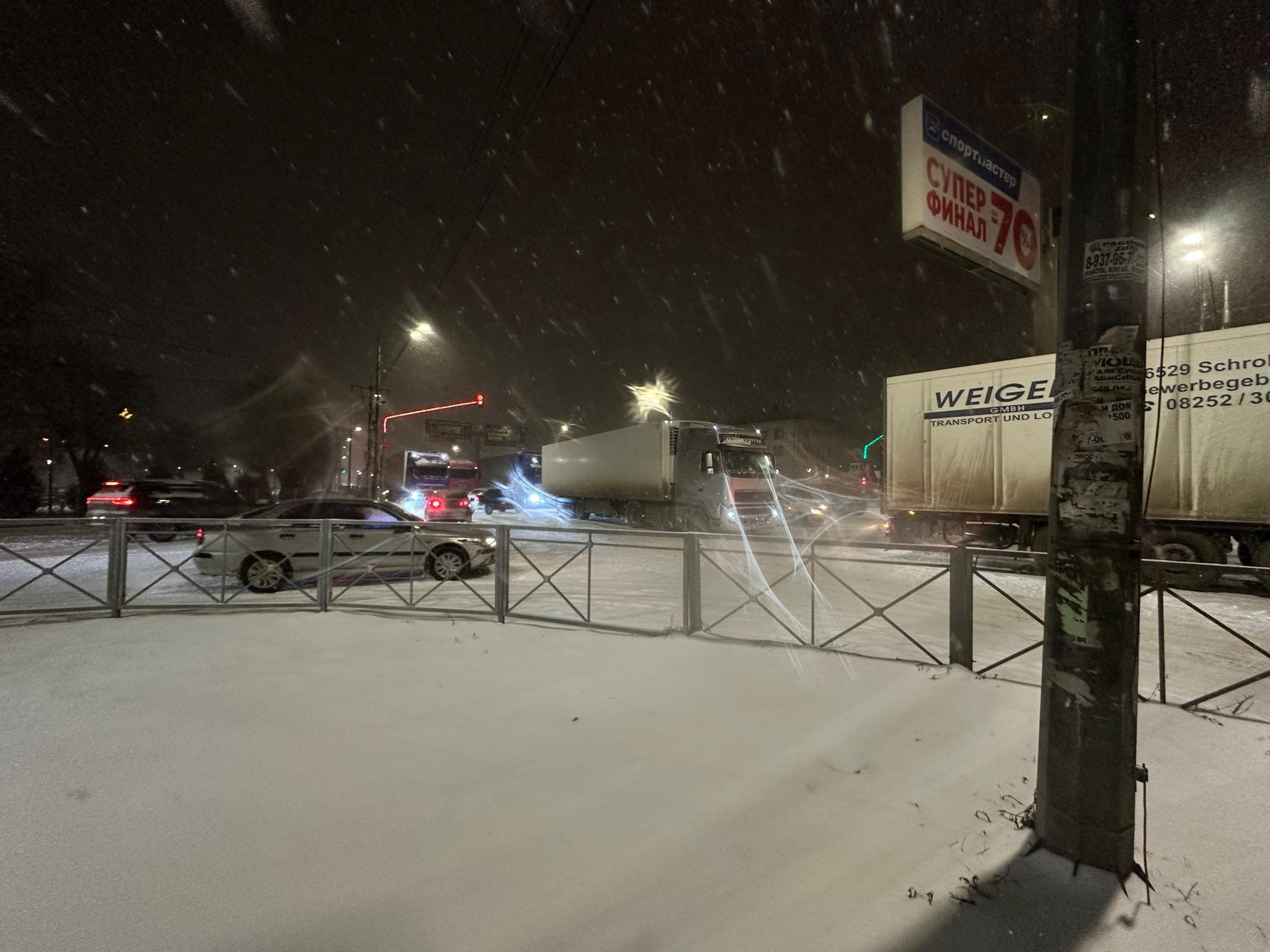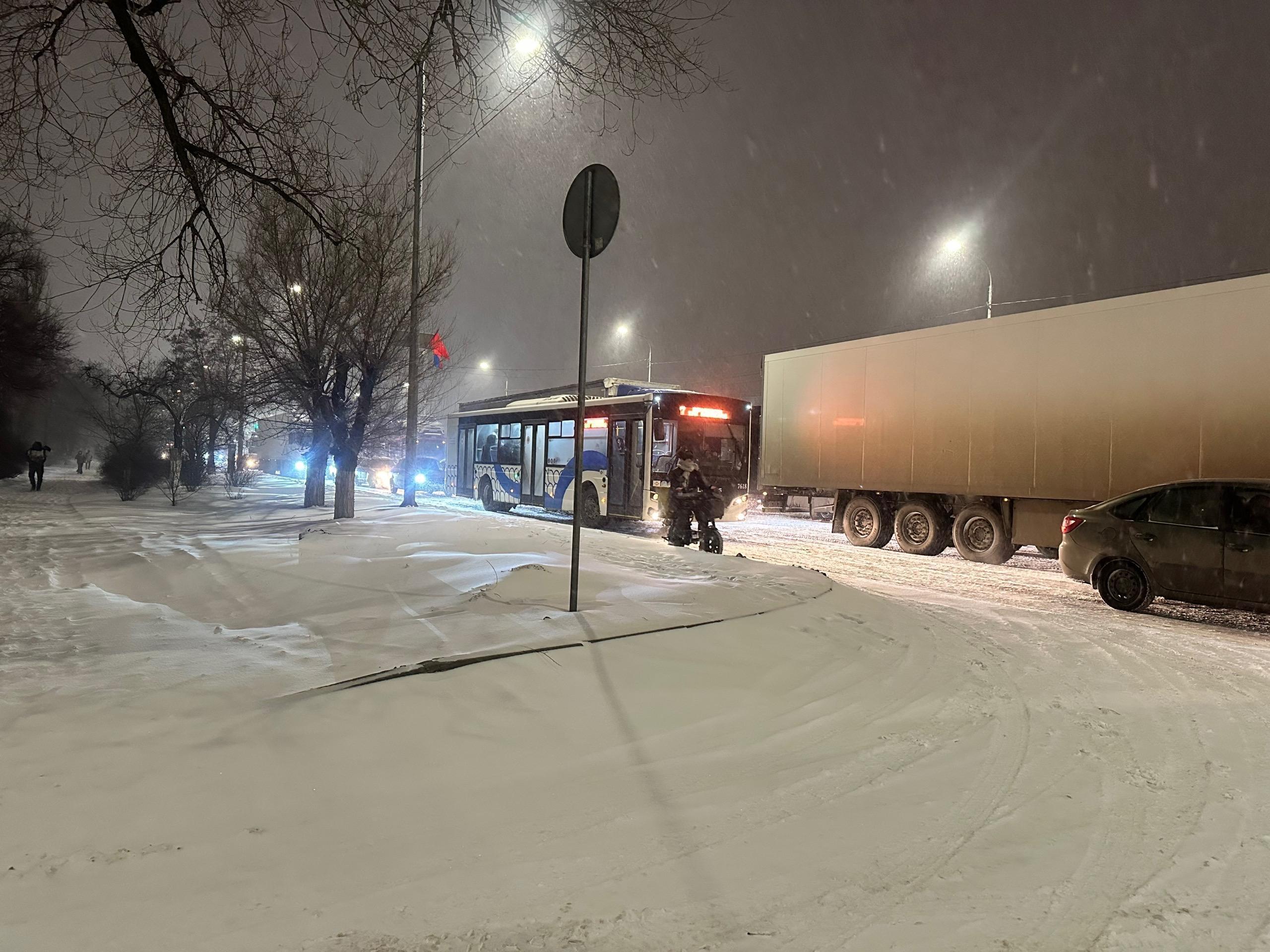 On the evening of February 2, heavy snowfall covered Volgograd, completely paralyzing traffic on the city«s main arteries. The first to be hit were the Second and Third Longitudinal highways. On Universitetsky Prospekt, a giant traffic jam formed, stretching from the Akvarel shopping center to the administration of the Sovetsky District. Trucks, unable to climb the incline on the icy asphalt, came to a halt, blocking passenger cars and buses.