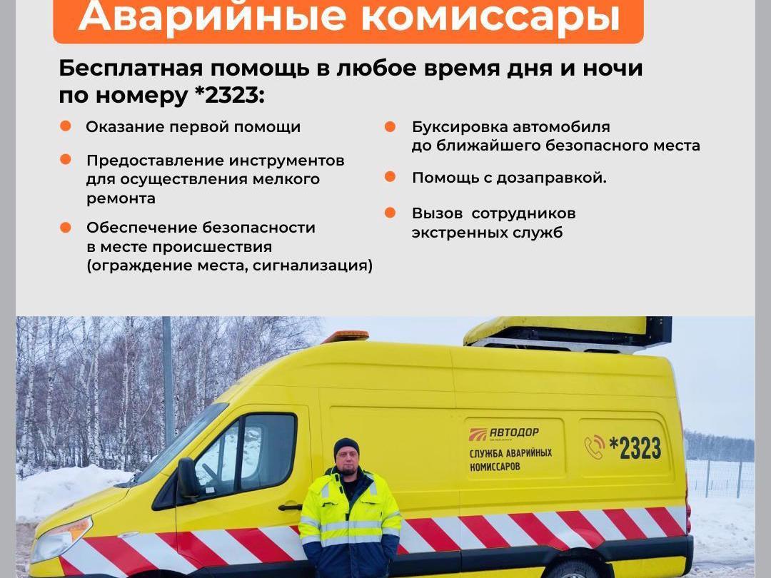 If something unforeseen happens during your trip on the M-12—your car breaks down, you run out of gas, you need a tow—emergency commissioners will come to your aid. This is free support 24/7. Emergency commissioners can be called by dialing *2323.