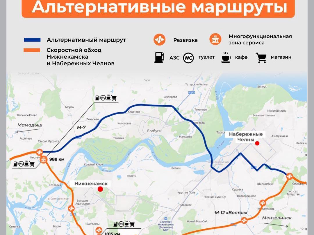 In December 2025, the Tatarstan section was supplemented with a bypass around Nizhnekamsk and Naberezhnye Chelny. This adds another 82 km (51 miles), passing through the Nizhnekamsky, Tukayevsky, and Yelabuzhsky districts.
