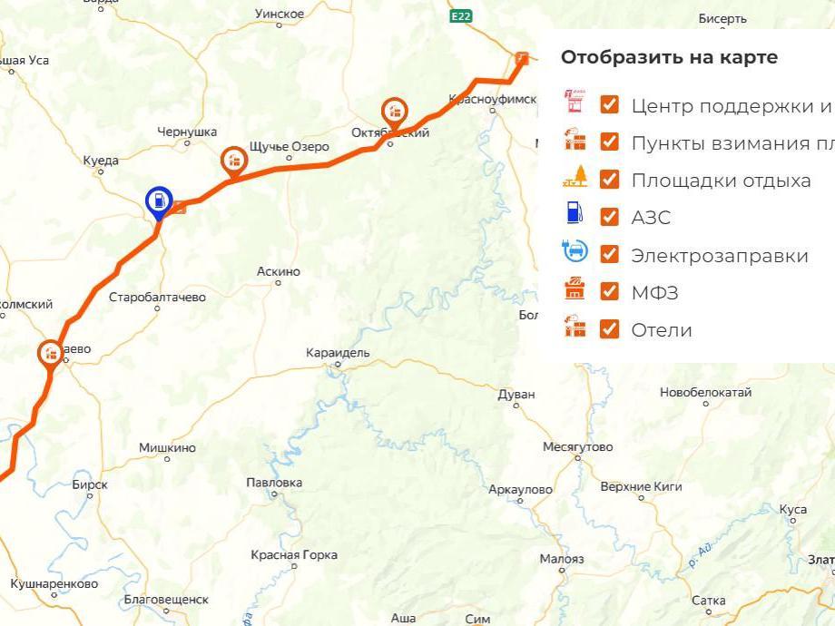 A full list of gas stations, MFZs, rest areas, and hotels can be found on the Avtodor website.