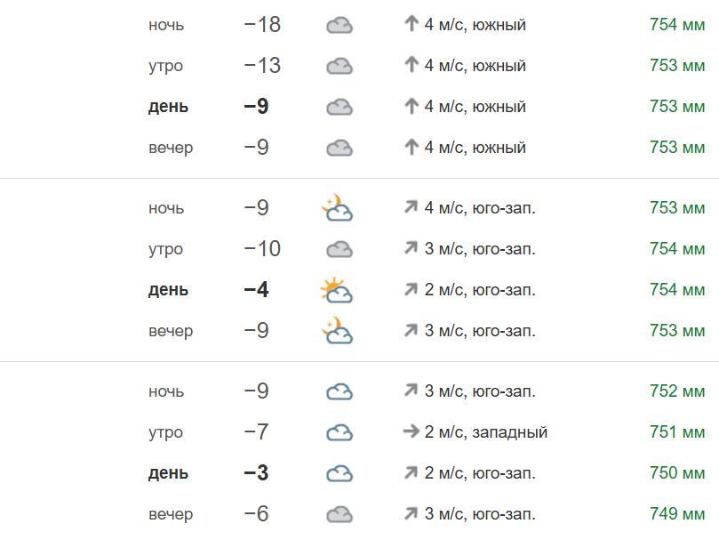 On the night into Sunday, Chelyabinsk is expected to see -30…-32 °C (-22…-26 °F), with daytime temperatures of -19…-21 °C (-2…-6 °F). Across the region, nighttime temperatures will be -27…-32 °C (-17…-26 °F), dropping to -37 °C (-35 °F) in the south; daytime temperatures will be -16…-21 °C (3…-6 °F), with -21…-26 °C (-6…-15 °F) in the southern parts.
