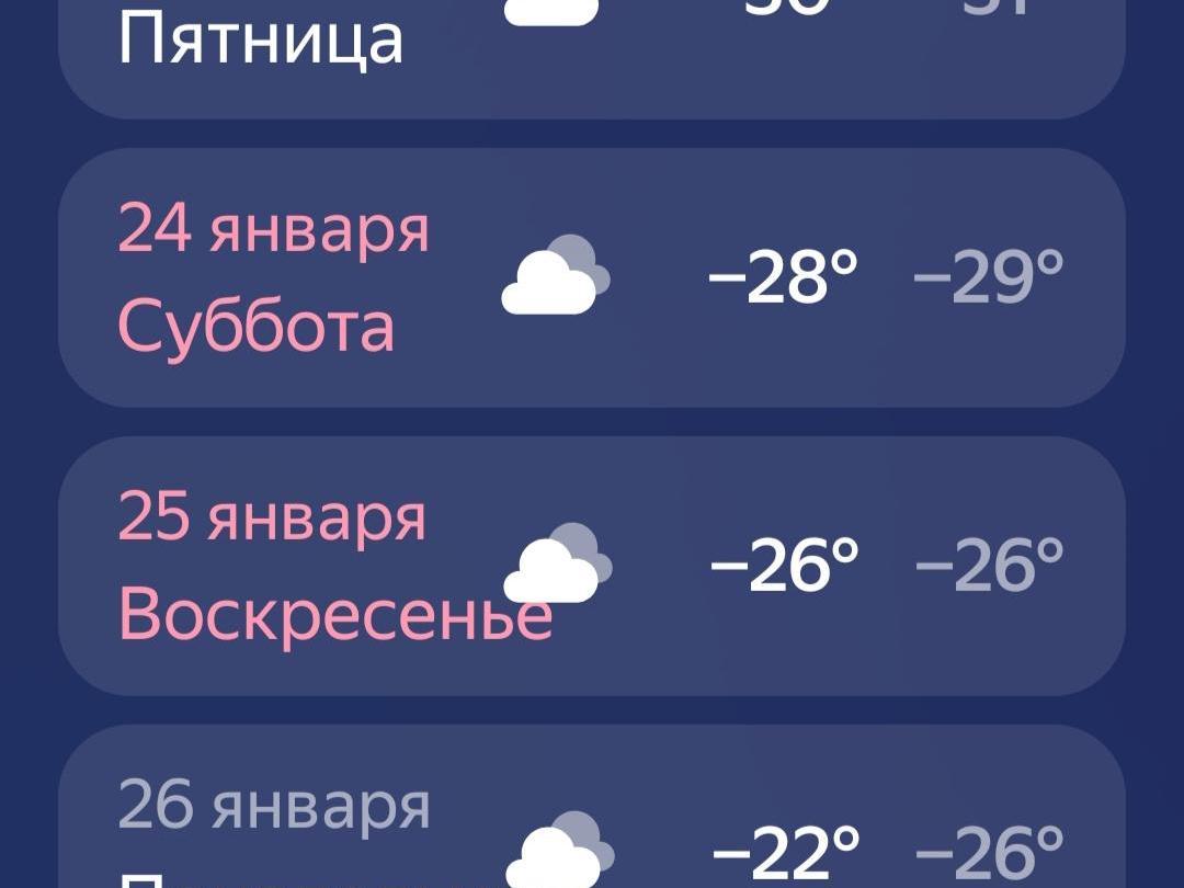According to the service Yandex Weather, in Yugra it will be cold for another week. Frosts will retreat only next Wednesday: on January 28 temperatures of -9…-11 degrees Celsius (16…12°F) are expected. On that day, forecasters also promise snowfall.