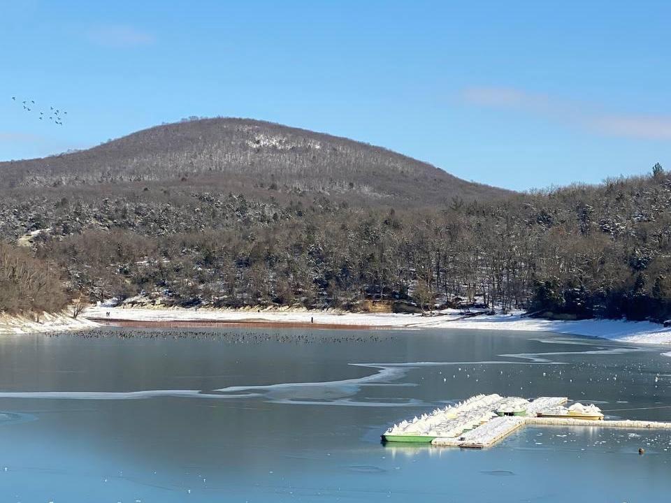 The famous Cypress Lake in the village of Sukko near Anapa has frozen over. A local blogger shared footage showing the water covered with a thin layer of ice and the tree roots lightly dusted with snow. Flocks of ducks sit on the smooth surface, with no tourists in sight, creating a quiet and calm atmosphere. As the Kuban region expects warming soon, we invite you to admire the winter beauty.
