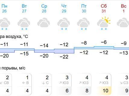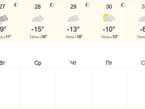 The coldest weather is forecast for Wednesday, 28 January, when the thermometers will drop to -14°C (7°F) during the day and to -20°C (-4°F) at night. After that, the temperature in the region will start to rise rapidly. From Friday, 30 January, the region will see daytime temperatures from -10 to -6°C (14…21°F). At night, the air temperature will be from -15 to -11°C (5…12°F).
