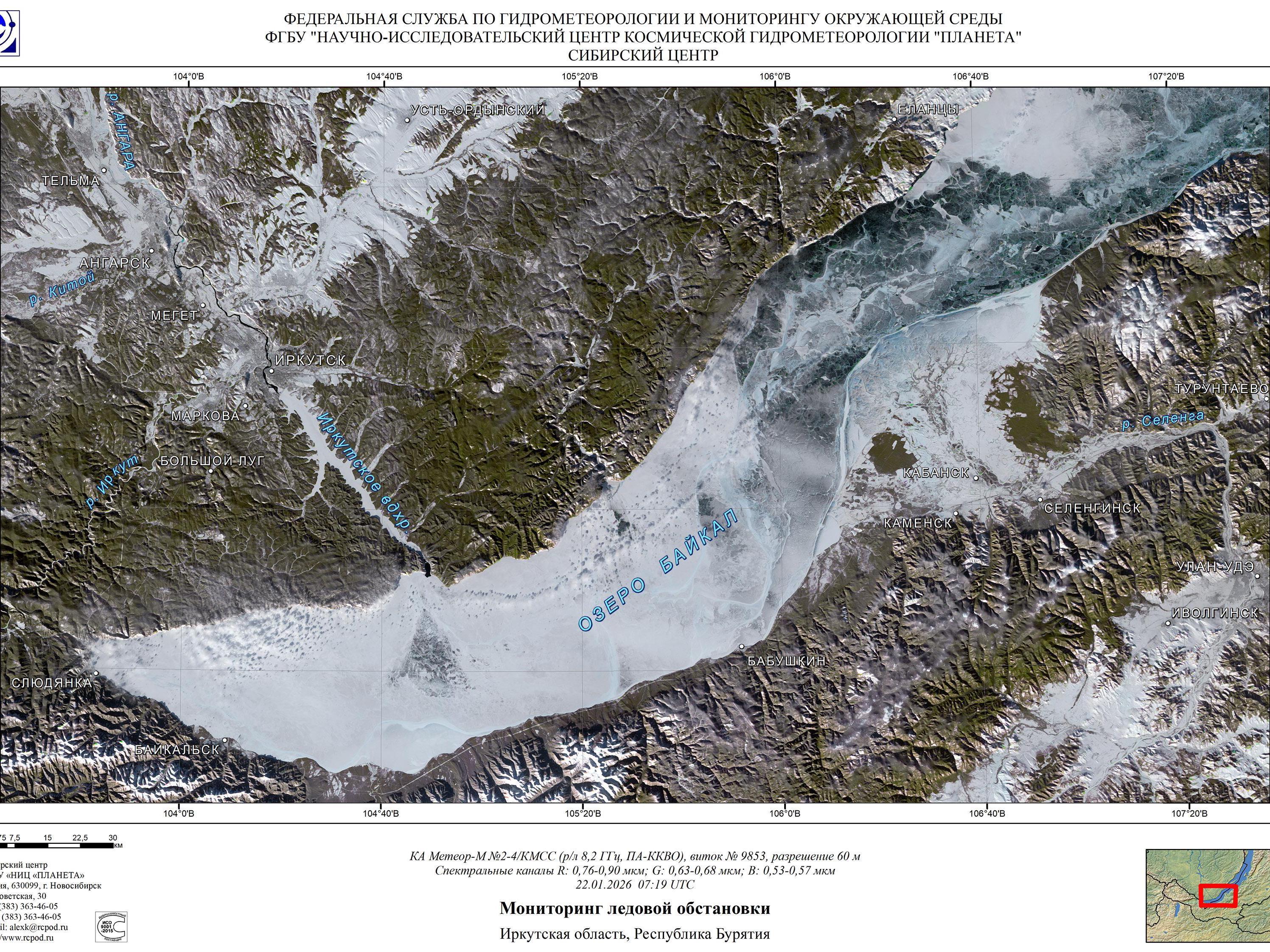 At the same time, on the latest satellite image of southern Baikal from January 22, the ice looks more impressive than in the images from January 19.