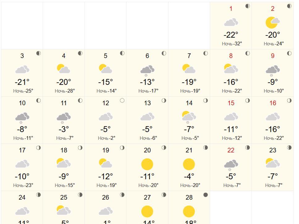 In addition, World-weather forecasters detailed the distribution of days in February for Krasnoyarsk: