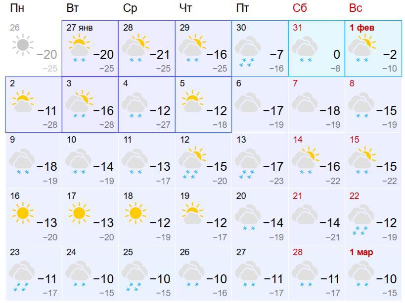 Previously, NGS24.RU reported on the weather for the last week of January in Krasnoyarsk, which will start very cold before warming up.