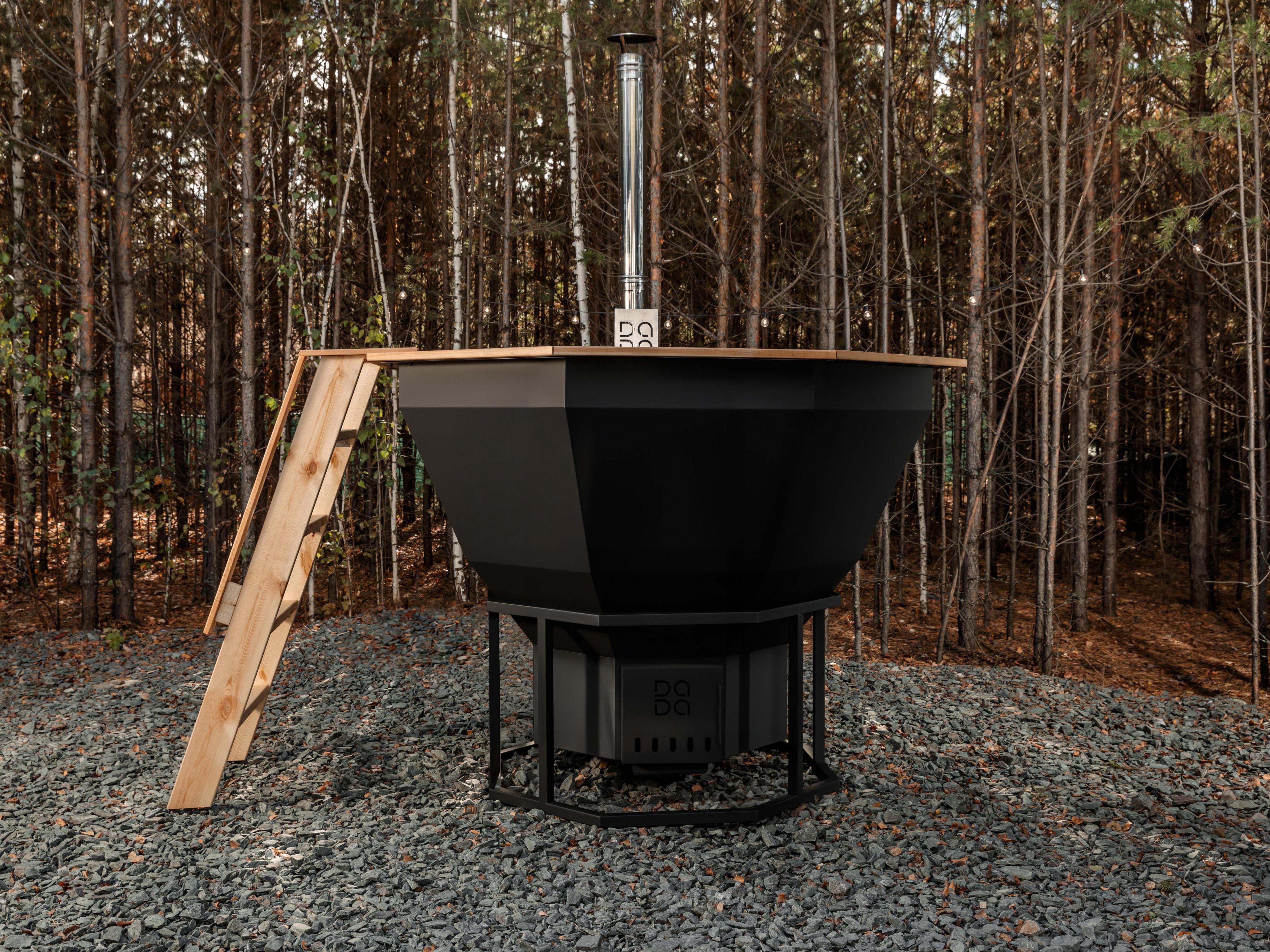 At DADA, they are sure: the tub is an excellent alternative to a bathhouse. Especially for those who tolerate high temperatures poorly and cannot stay long in a stuffy room. In an outdoor tub, the water is kept at a comfortable level for humans of 36–38 degrees Celsius (97–100°F), and body warming occurs evenly. Bath tubs look aesthetically pleasing, warm you up in the cold, and in summer — help you relax. Essentially, it«s the same hot spring, just right at home.